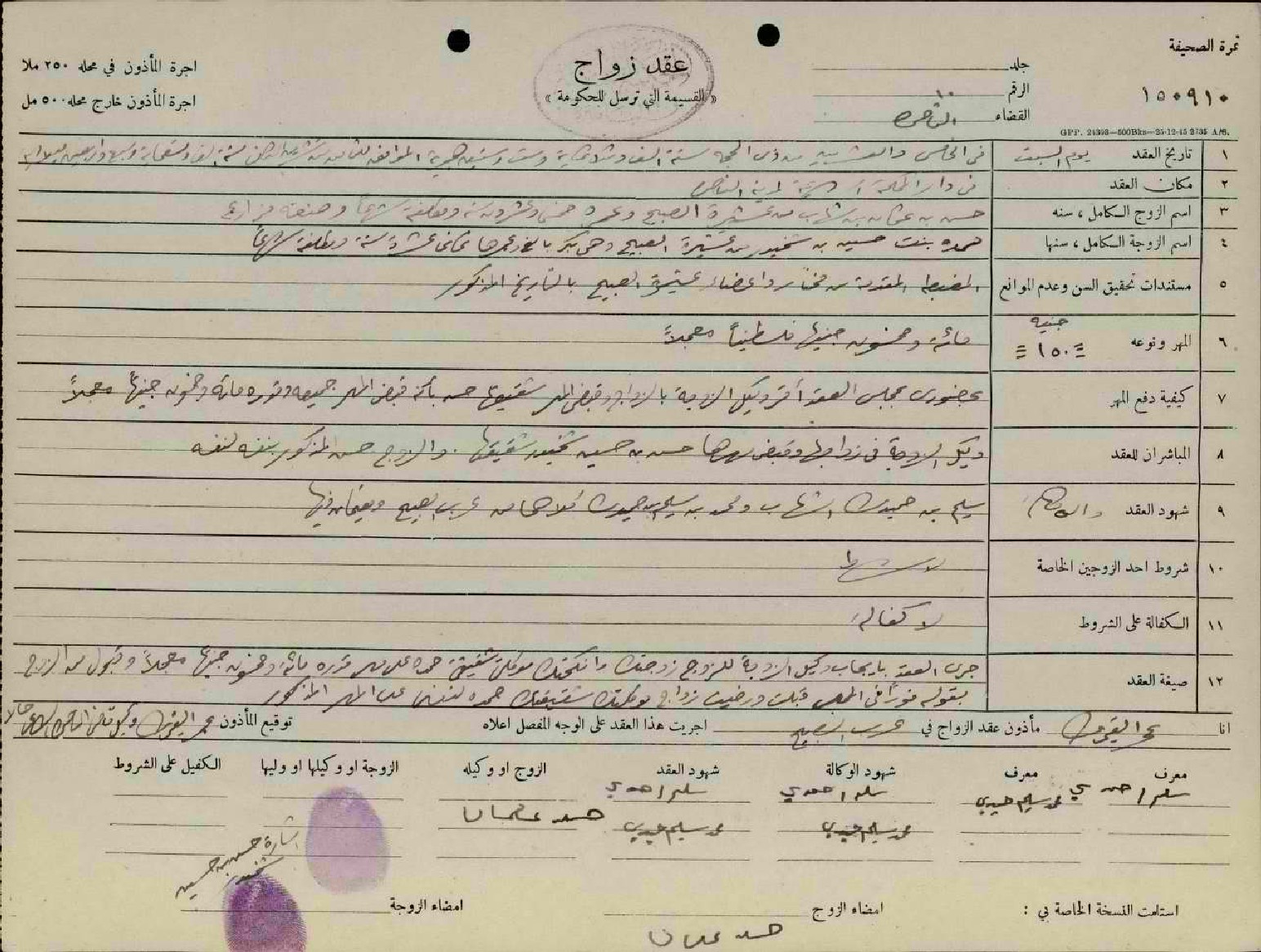اسم الزوجة حمدة حسين شخيدر-عرب الصبيح