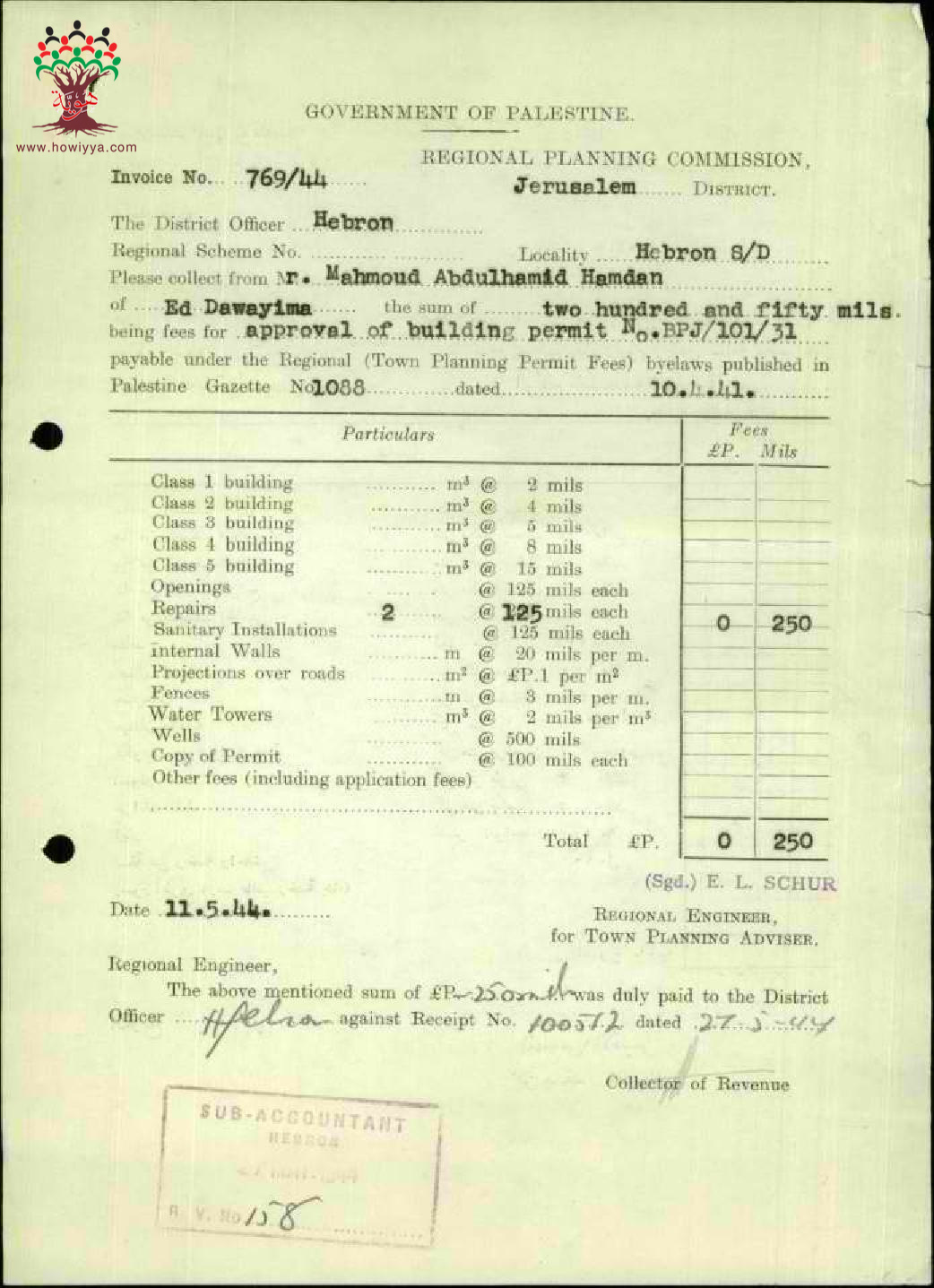 طلب رخصة بناء ل محمود عبد الحميد حمدان-الخليل