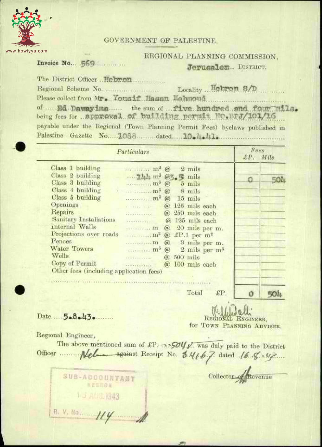 طلب رخصة بناء ل يوسف حسن محمود-الخليل