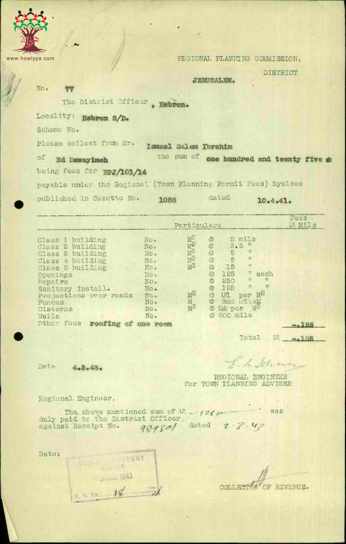 طلب رخصة بناء ل اسماعيل سالم ابراهيم-الخليل