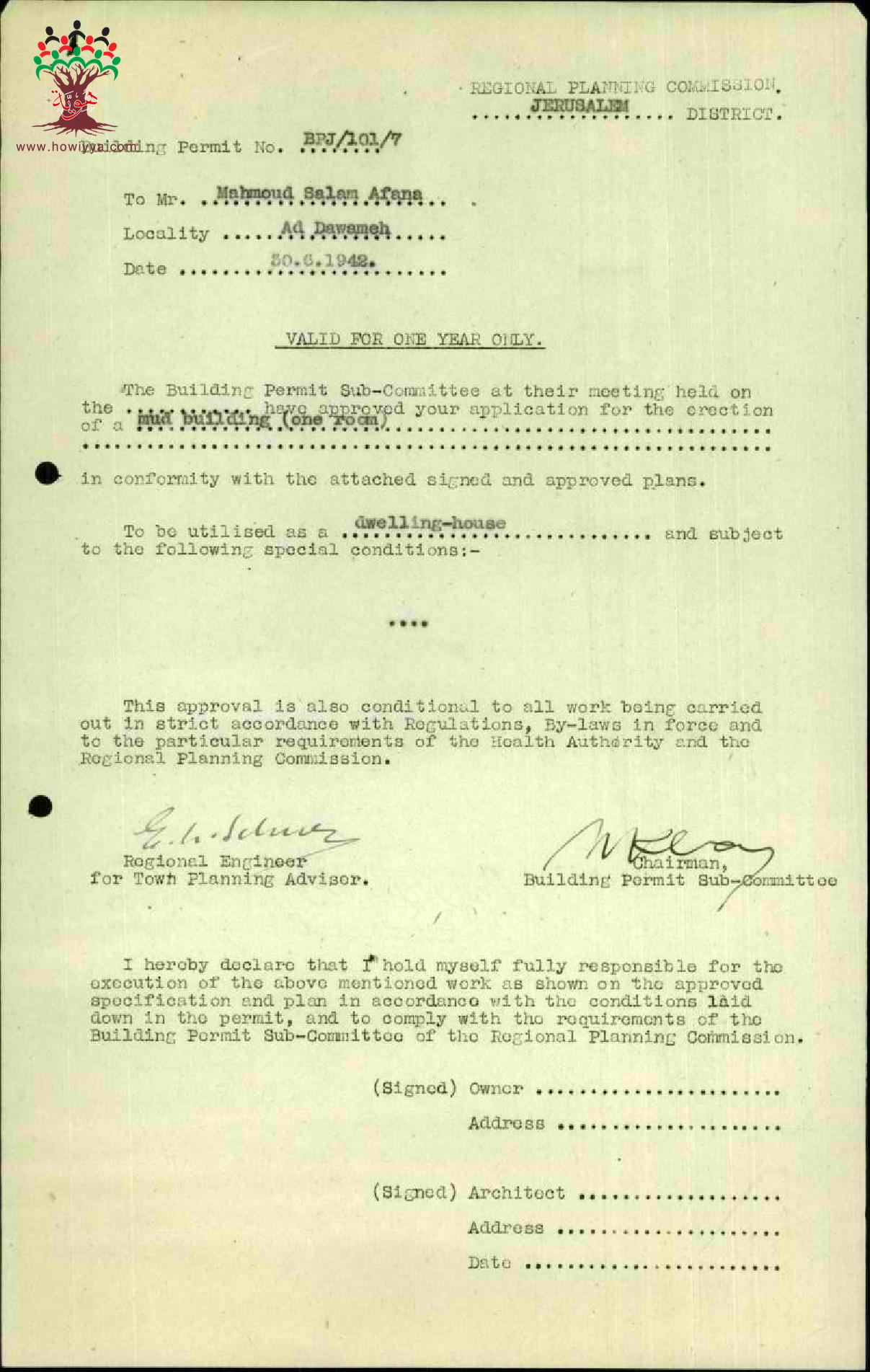 طلب رخصة بناء ل محمود سالم عفانة-الخليل