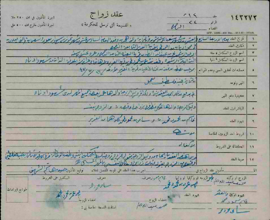 اسم الزوجة وطفة عمر محمود المحمد-العزير