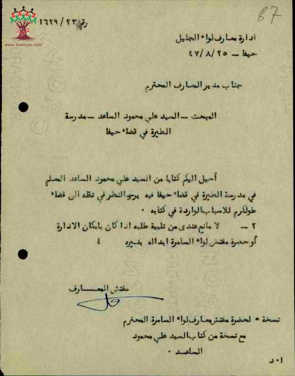 مجموعة رسائل بخصوص طلب المعلم علي ساعد نقله من مدرسة الطيرة