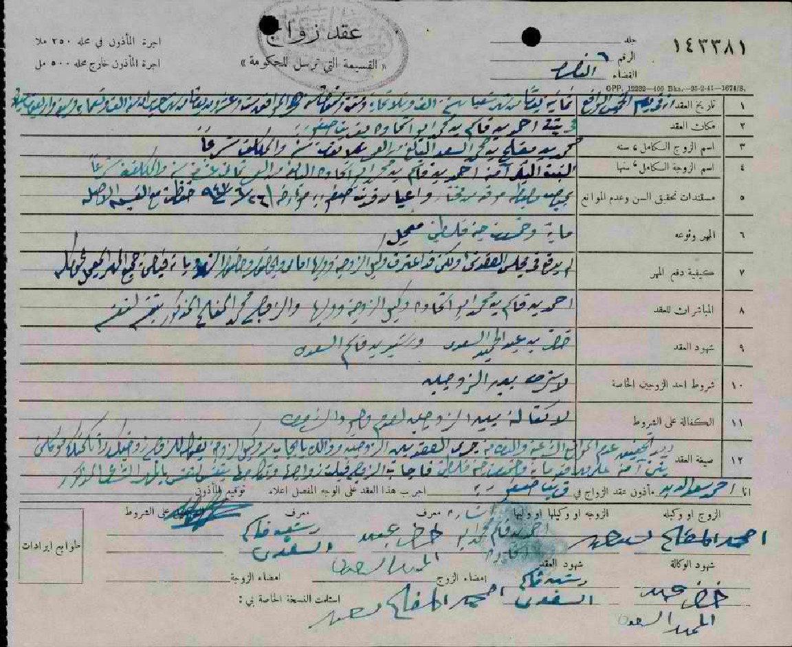 عقد زواج محمد السعد و آمنة أبو شحادة