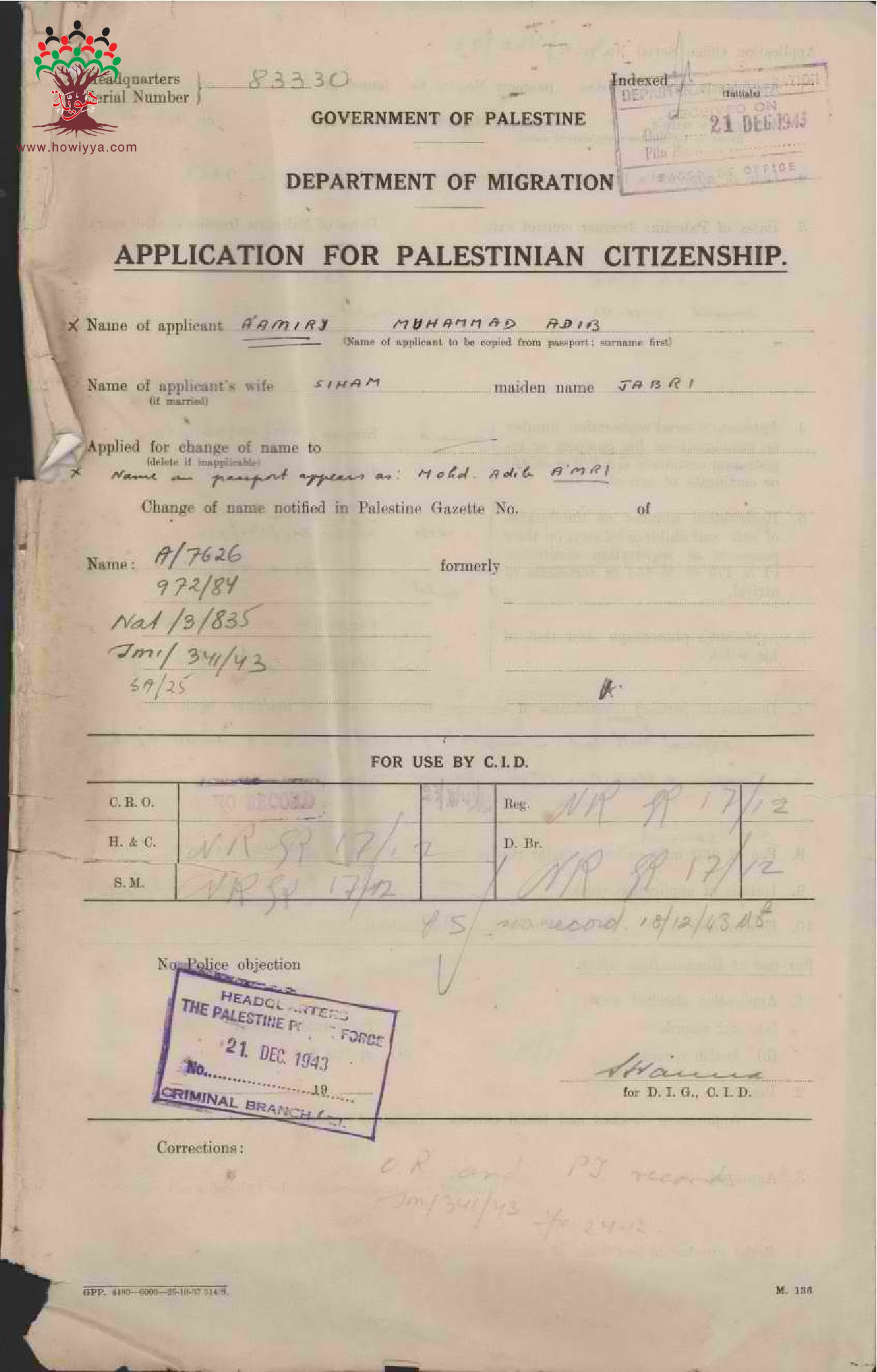طلب مقدم من محمد أديب العامري للحصول على الجنسية الفلسطينية