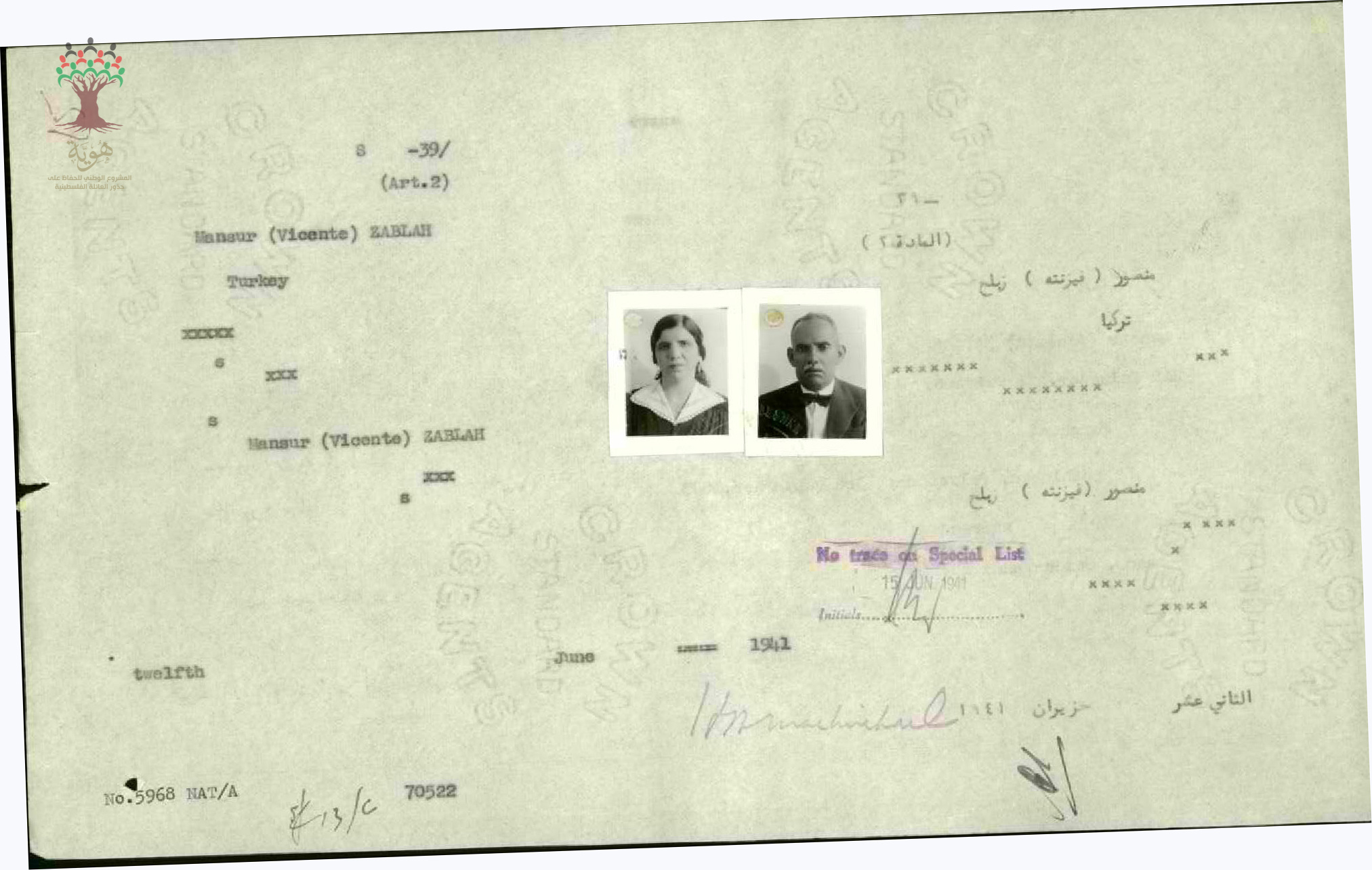 ورقة بيانات منصور زبلح المرفقة بطلب الجنسية