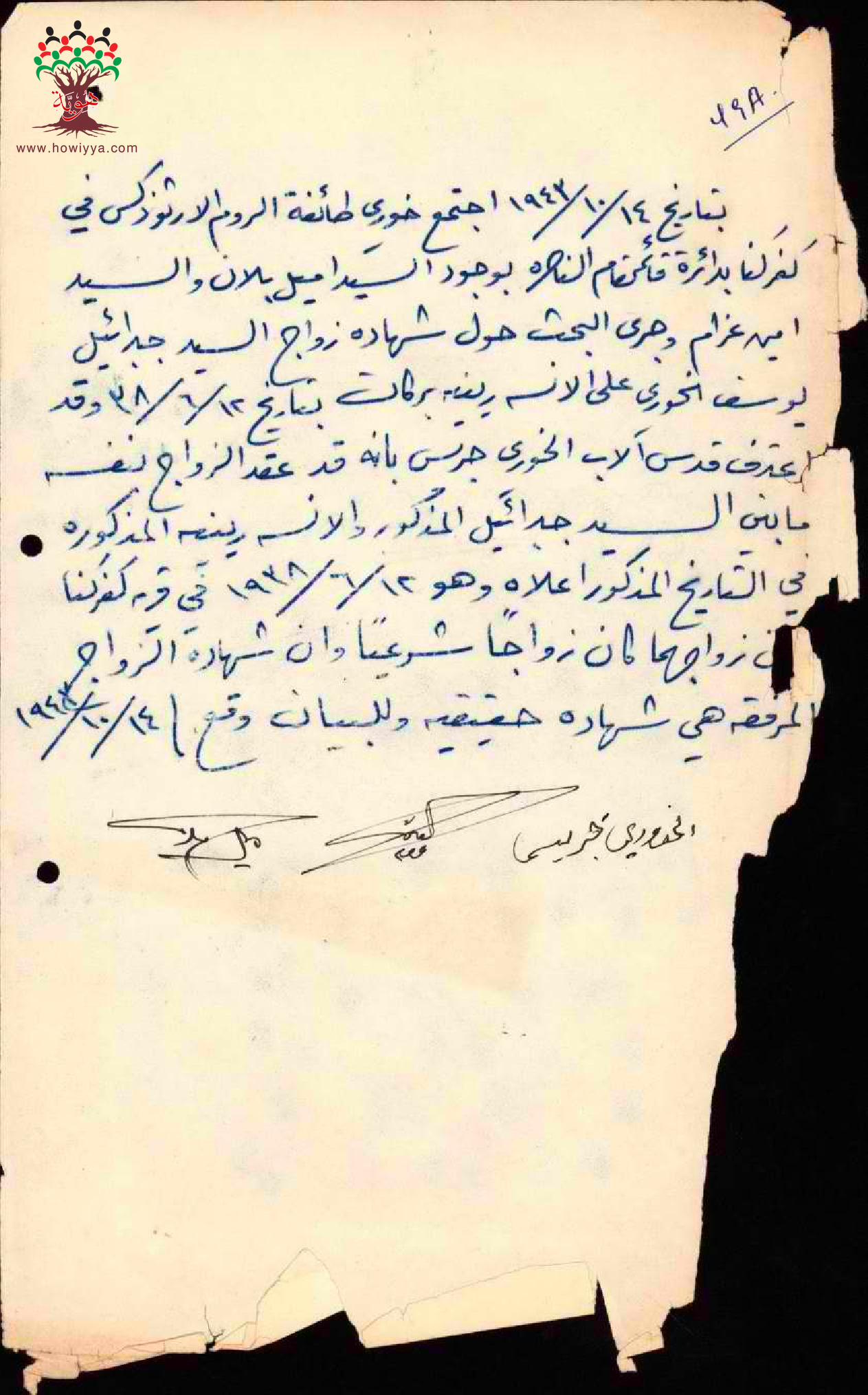 رسائل بخصوص شهادة الأب خوري جريس على شرعية عقد زواج جبرائيل يوسف خوري و رينيه بركات