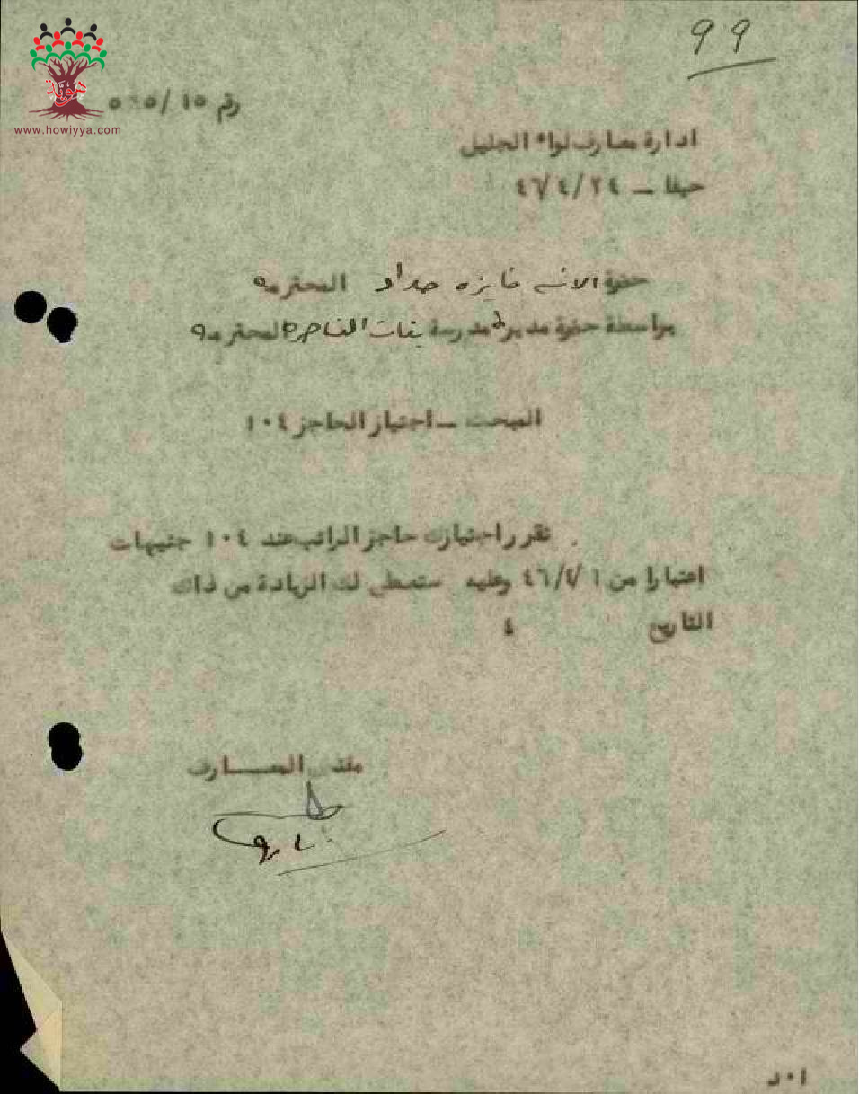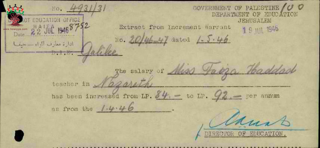 مجموعة رسائل بخصوص زيادة راتب المعلمة فايزة حداد السنوية