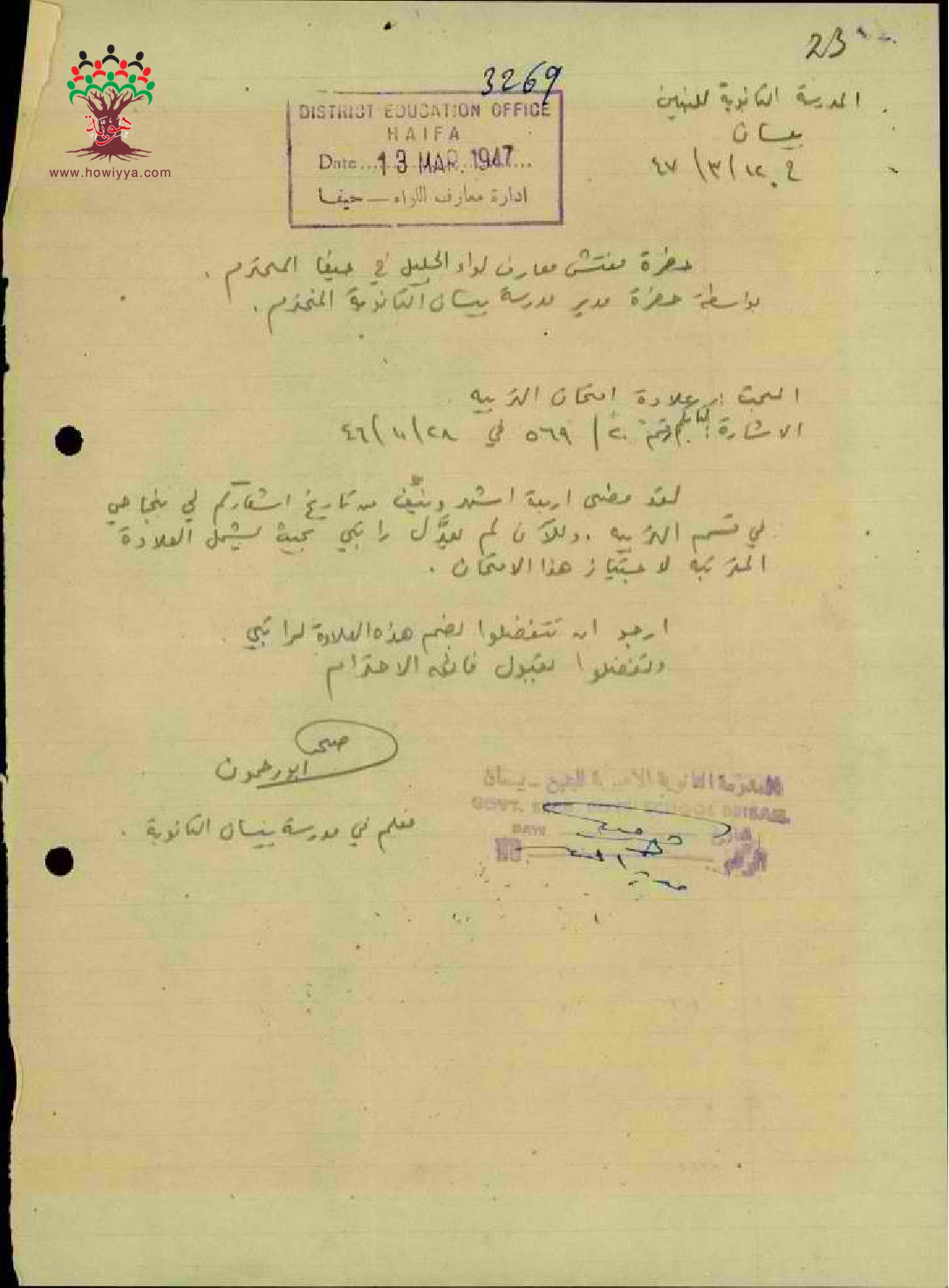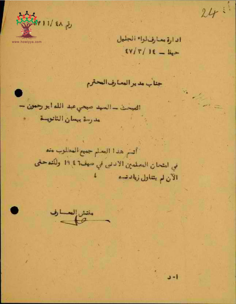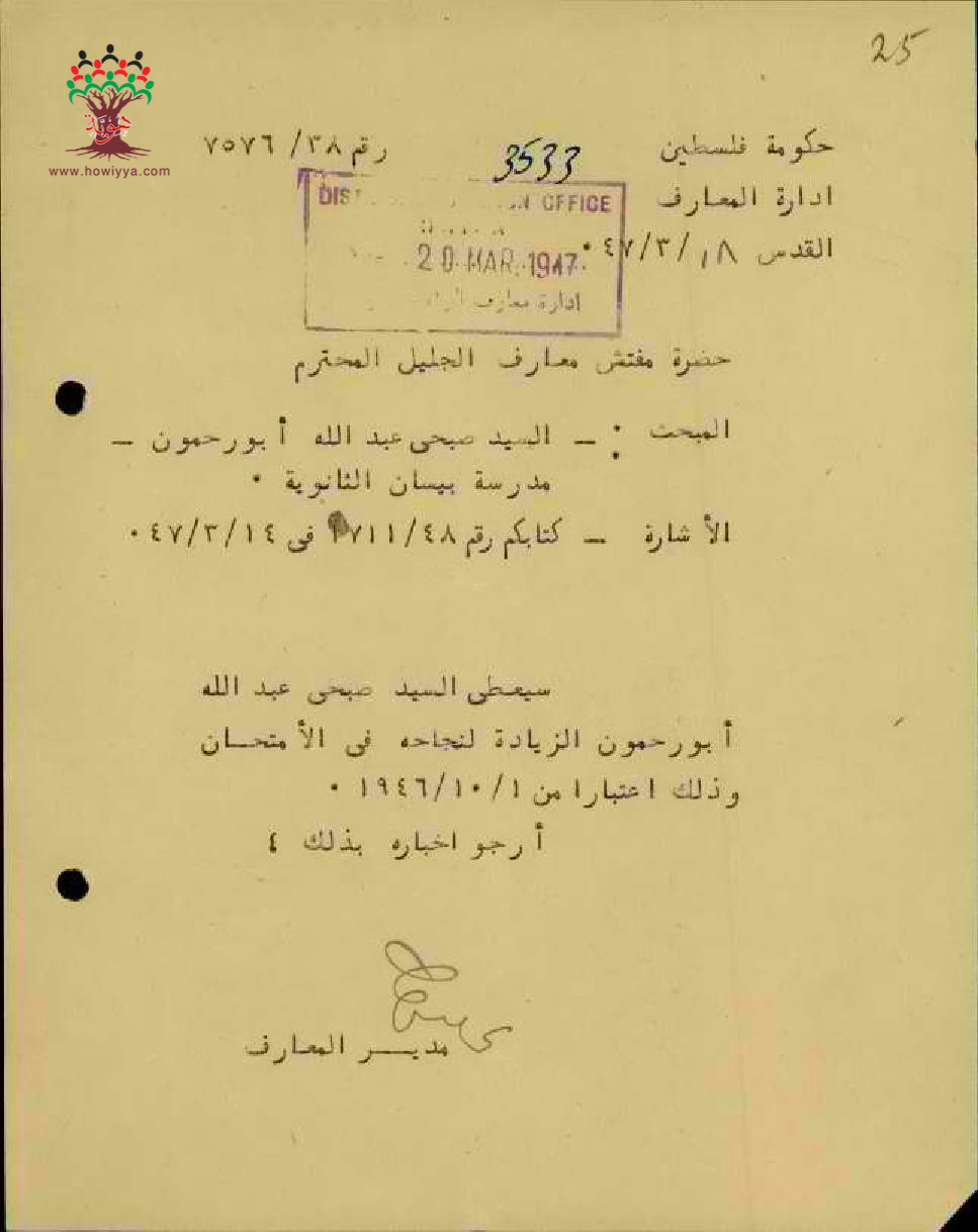 مجموعة رسائل بخصوص اعطاء المعلم صبحي أبو رحمون زيادته السنوية بعد تجاوزه امتحان المعلمين