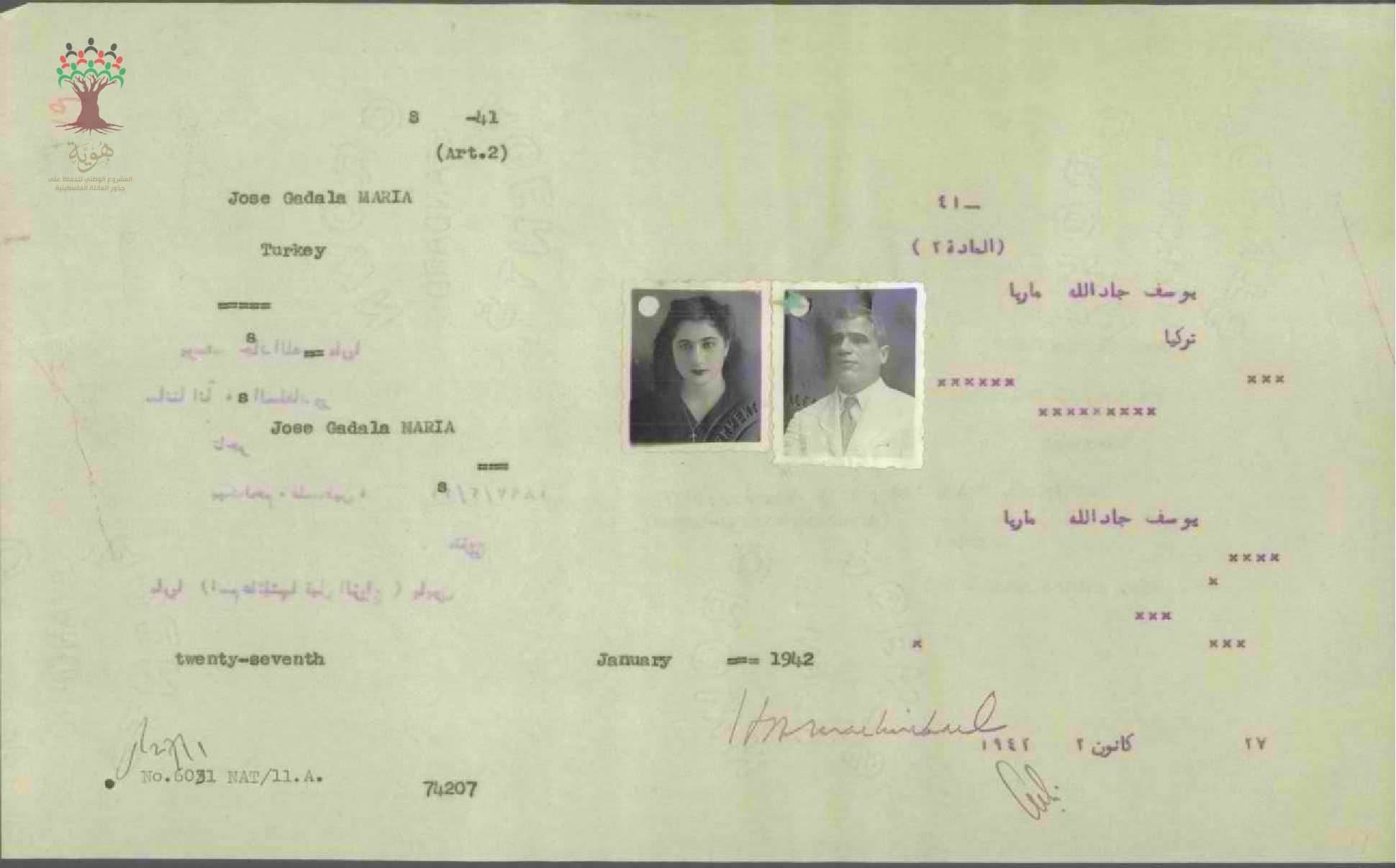 ورقة بيانات يوسف ماريا المرفقة بطلب الجنسية