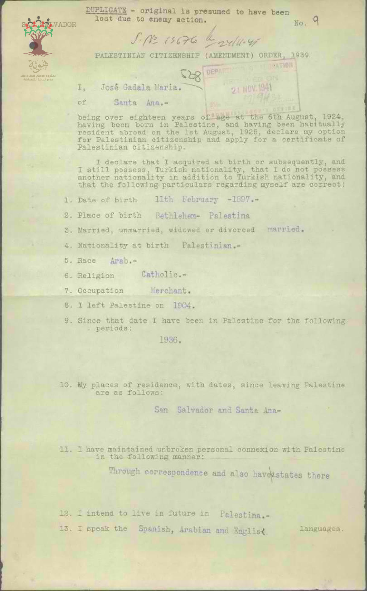 طلب الجنسية الفلسطينية-يوسف جاد الله ماريا-بيت لحم/السلفادور