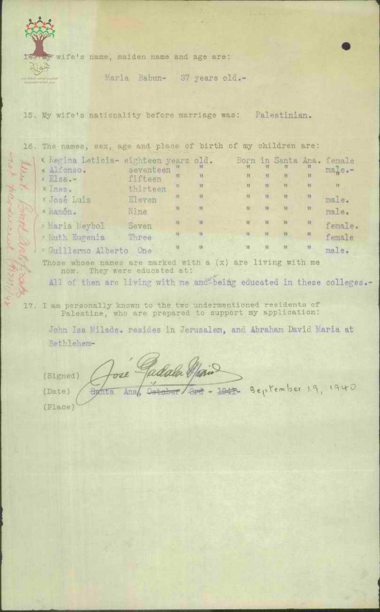 طلب الجنسية الفلسطينية-يوسف ماريا-بيت لحم/السلفادور