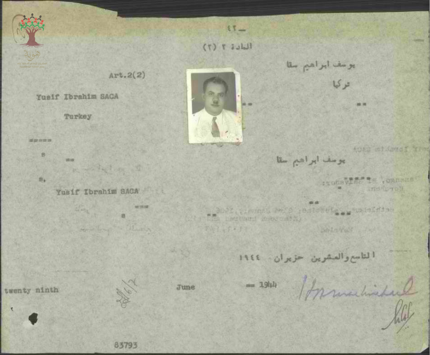 ورقة بيانات يوسف ابراهيم سقا المرفقة بطلب الجنيبة