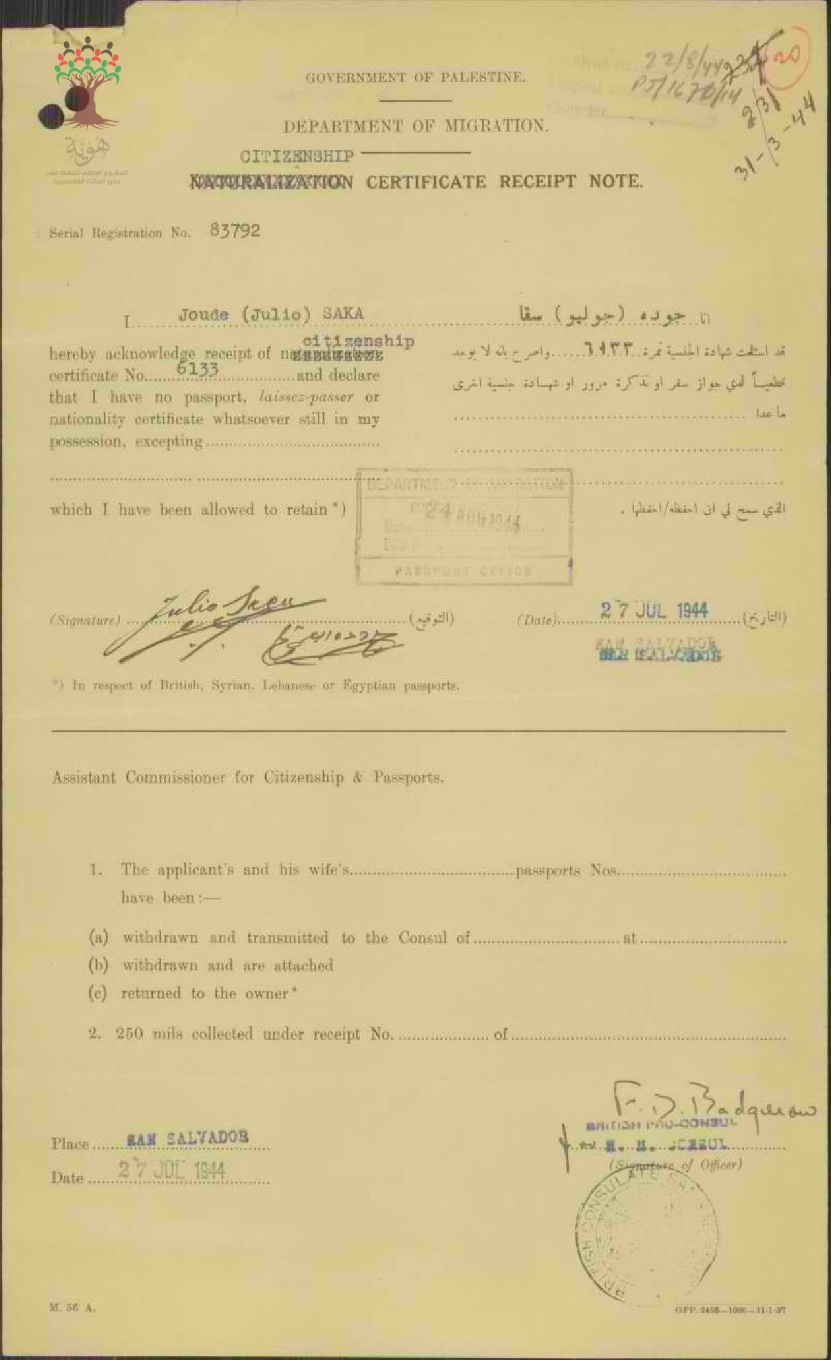 ايصال موقع من جودة سقا باستلام الجنسية الفلسطينية