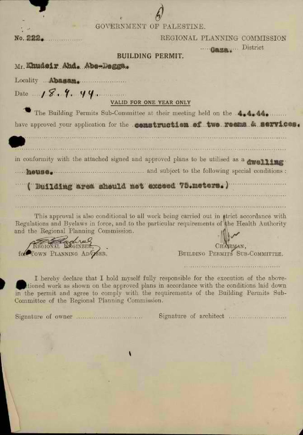 رخصة بناء ل خضير عبد أبو دقة-عبسان