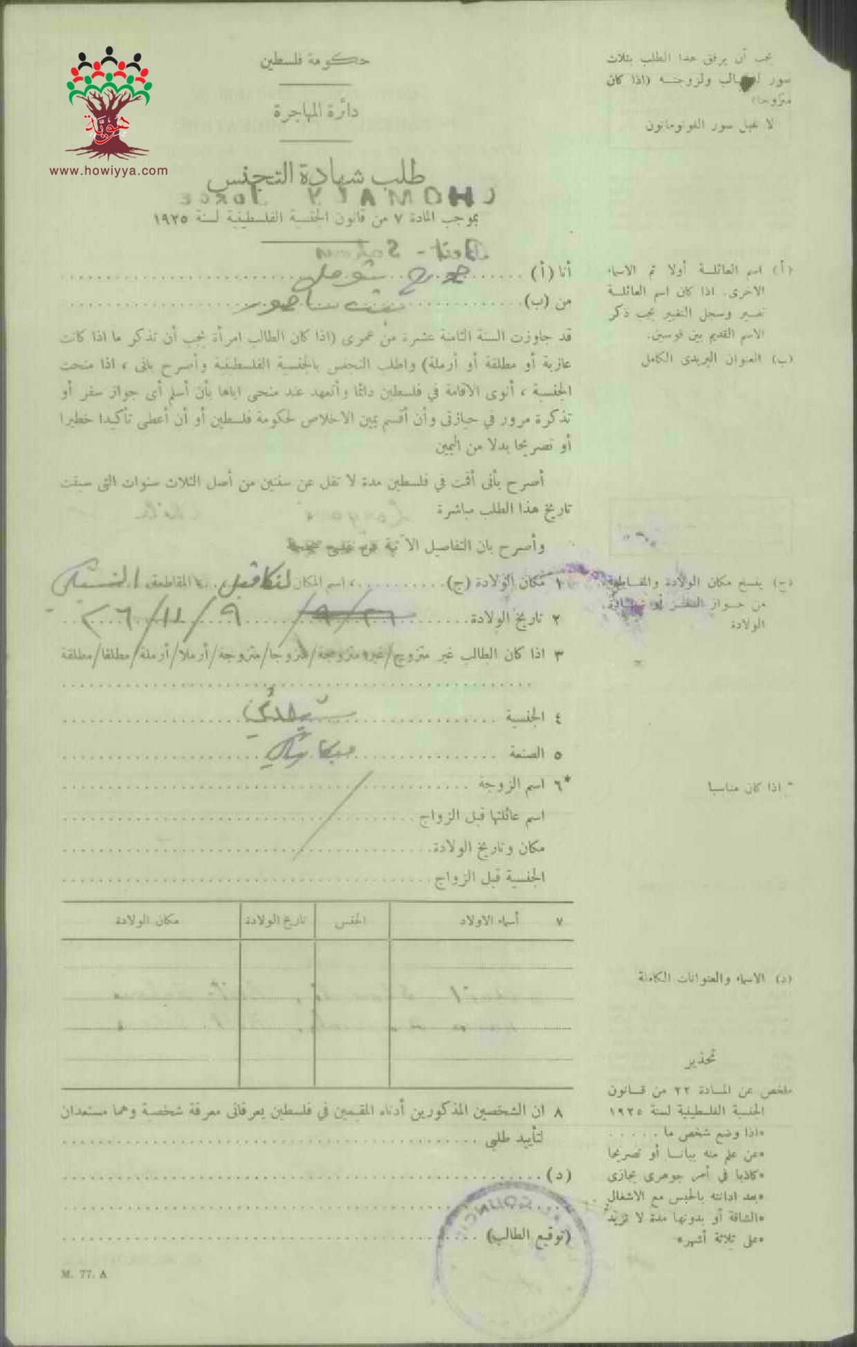 طلب الجنسية الفلسطينية-جورج شوملي-بيت ساحور/تشيلي