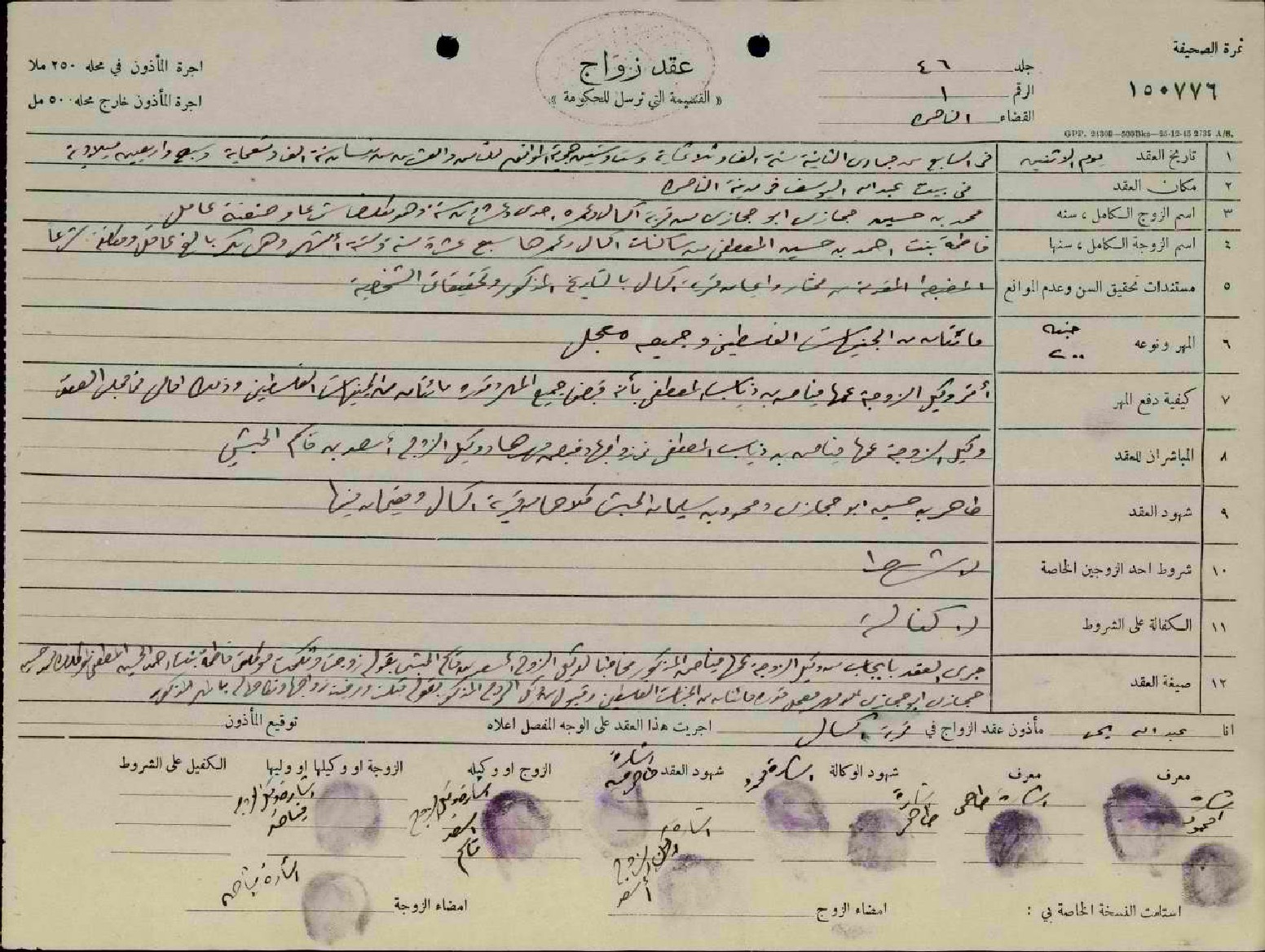عقد زواج محمد أبو حجازي و فاطمة المصطفى