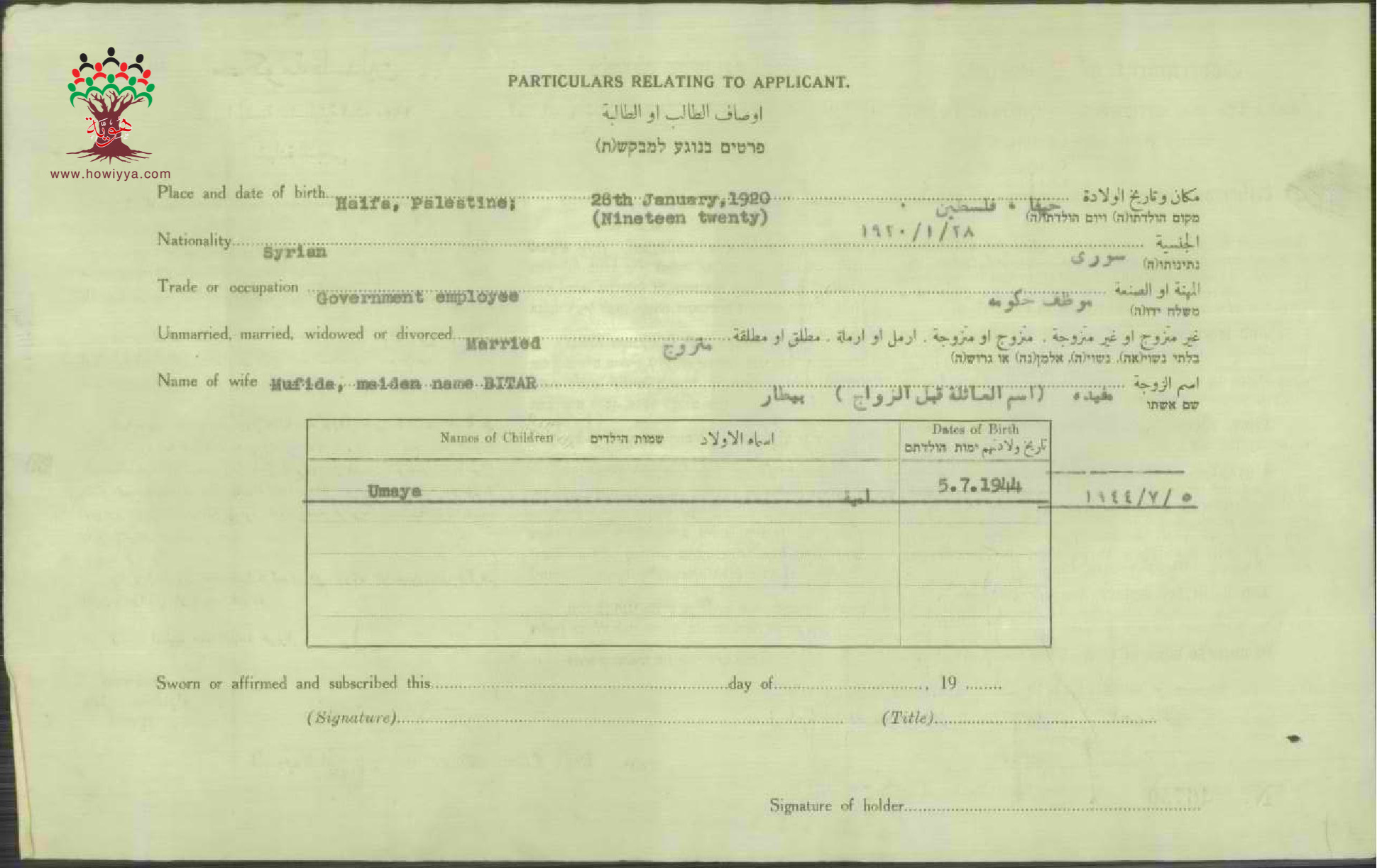 شهادة الجنسية الفلسطينية ل صلاح سلام