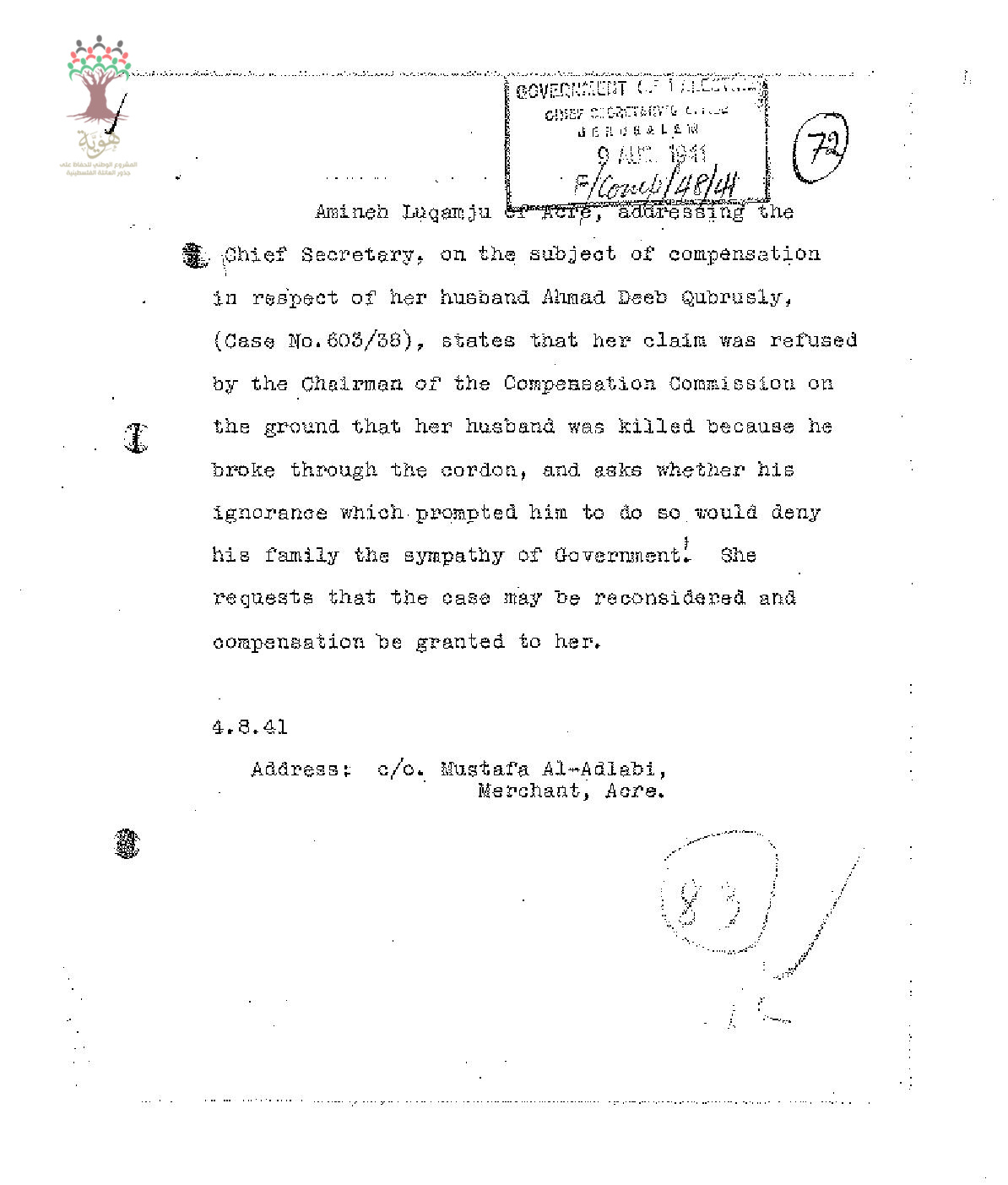 مجموعة رسائل بخصوص طلب تعويض مقدم من أمينة لقمجي
