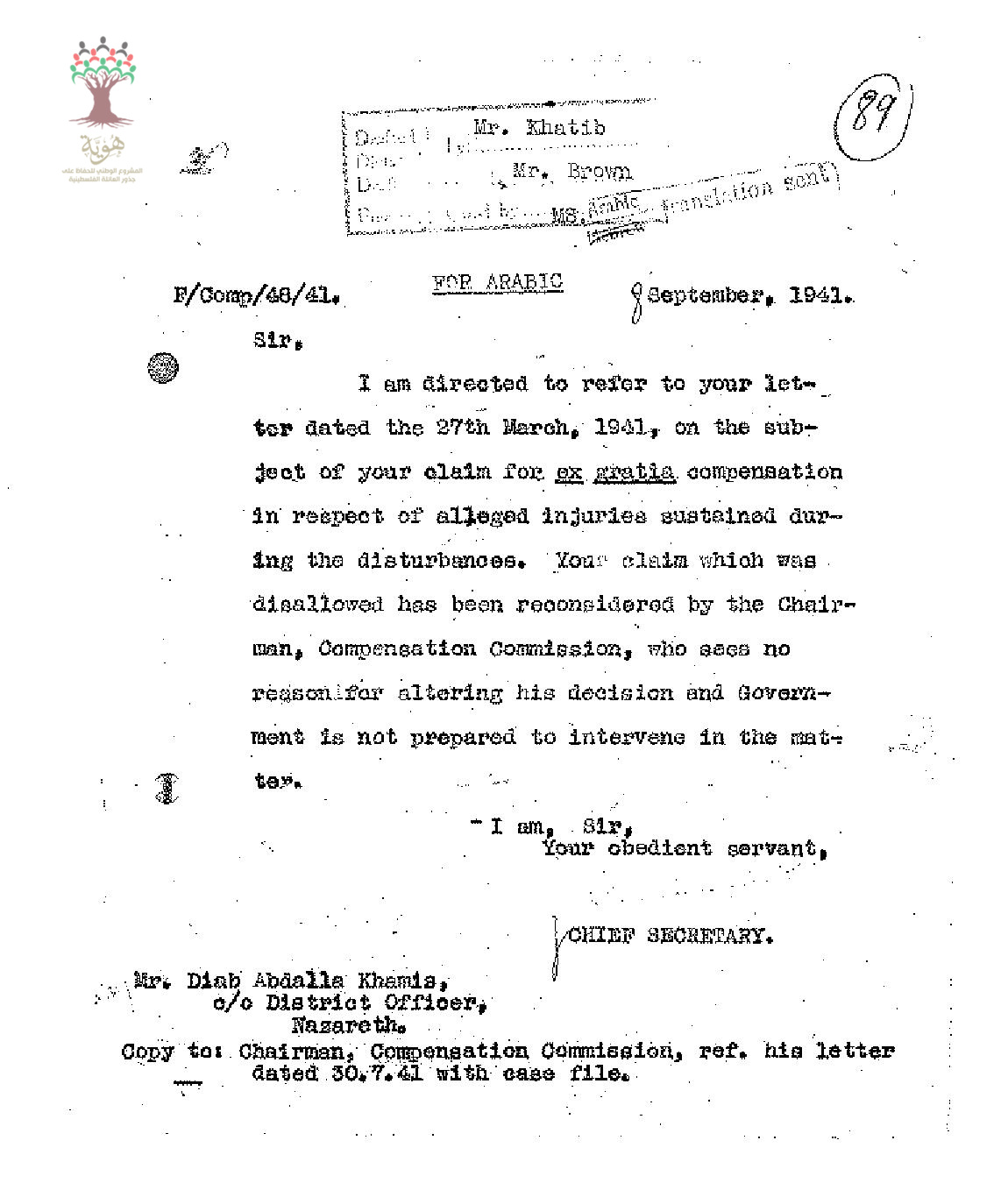 مجموعة رسائل بخصوص طلب تعويض مقدم من دياب خميس