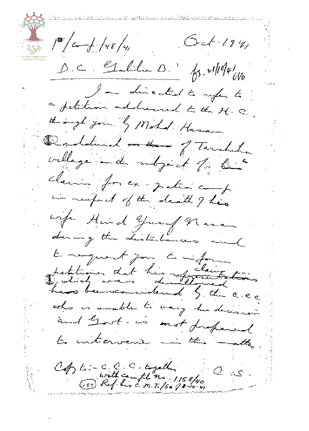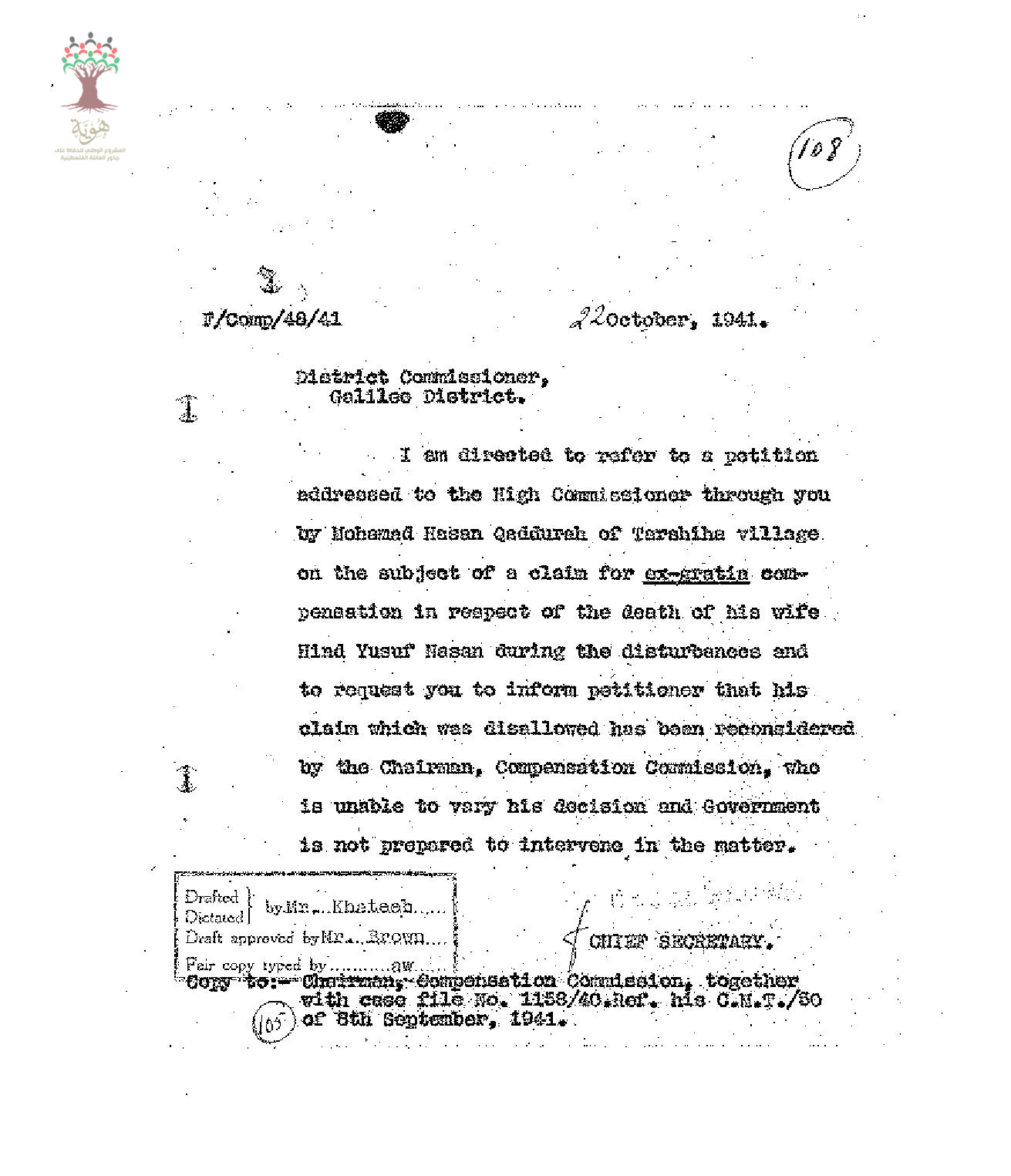 طلب تعويض مقدم من محمد حسن قدورة الى السكرتير العام