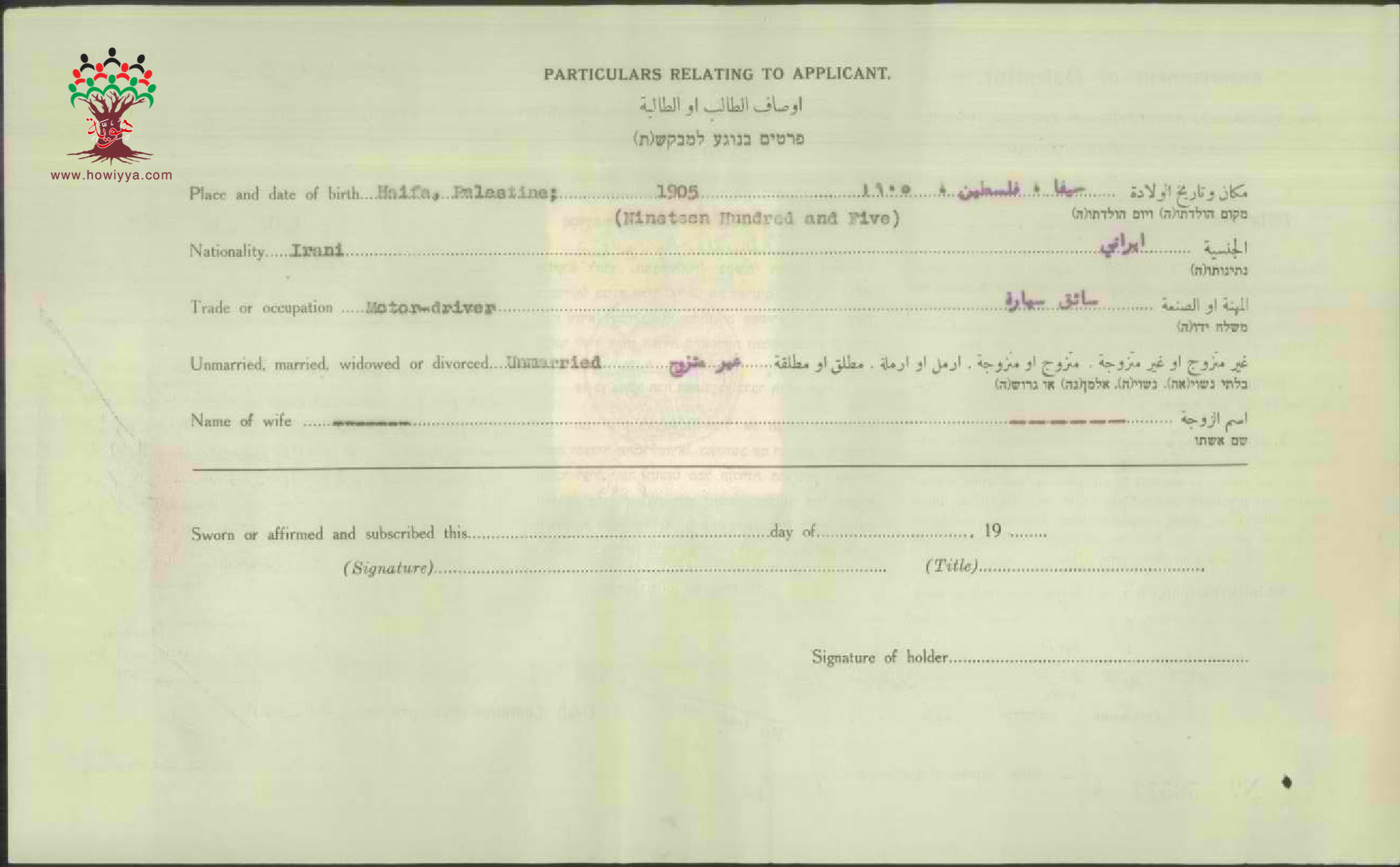 شهادة الجنسية الفلسطينية ل كمال ناجيا