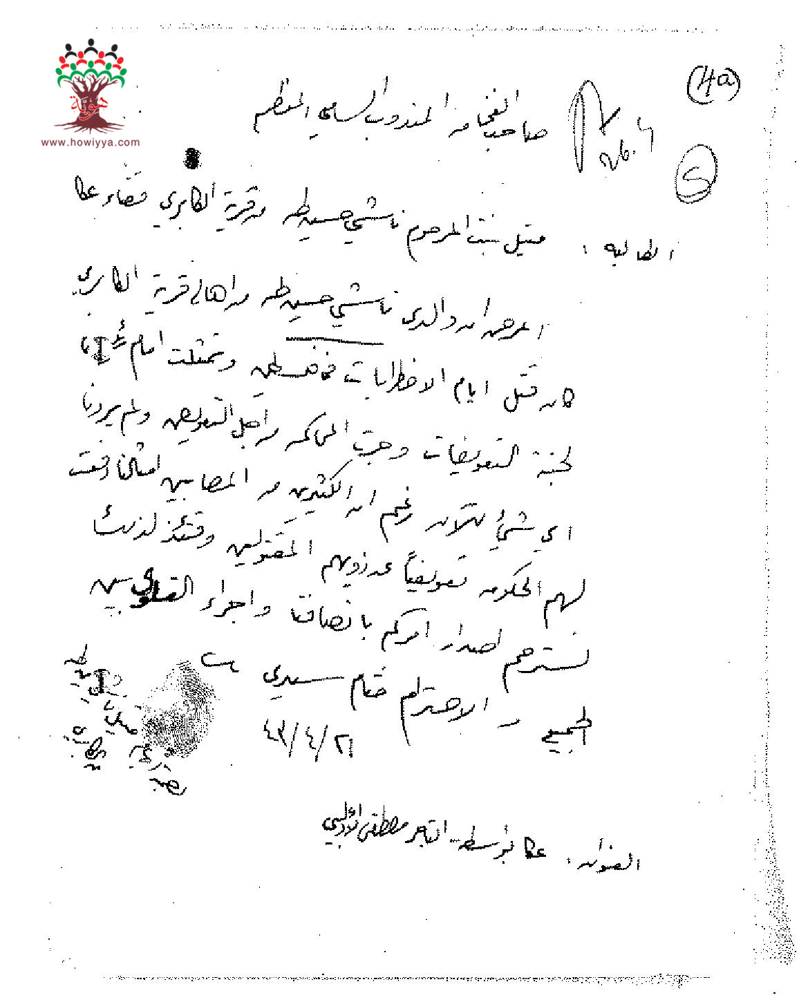طلب تعويض مقدم من متيل ناشي طه الى السكرتير العام
