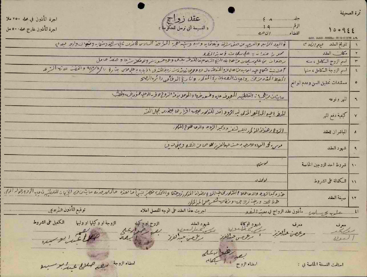 عقد زواج رضوان سليمان و آمنة أبو سيد