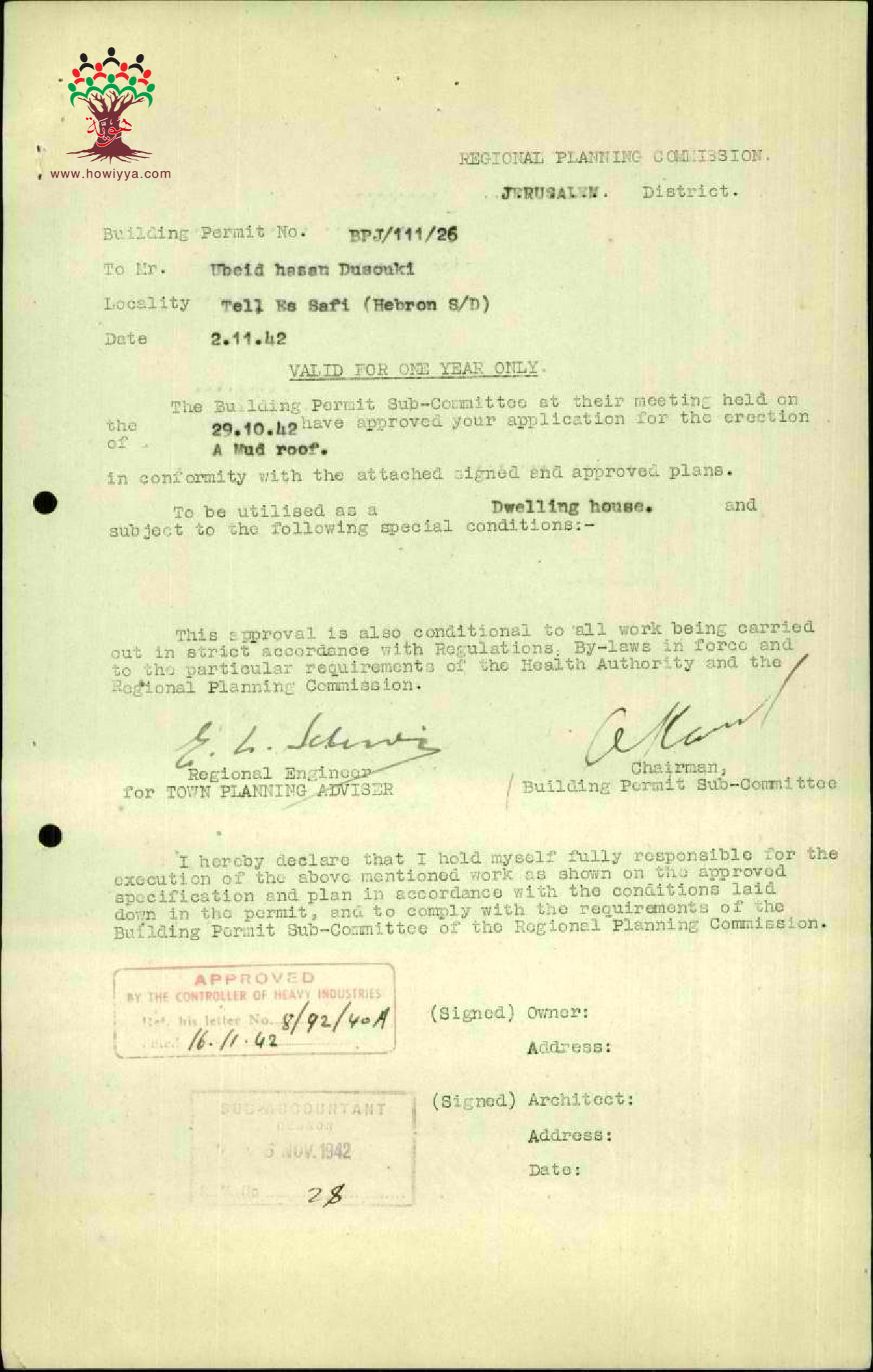 طلب رخصة بناء ل عبيد حسن دسوقي-تل الصافي