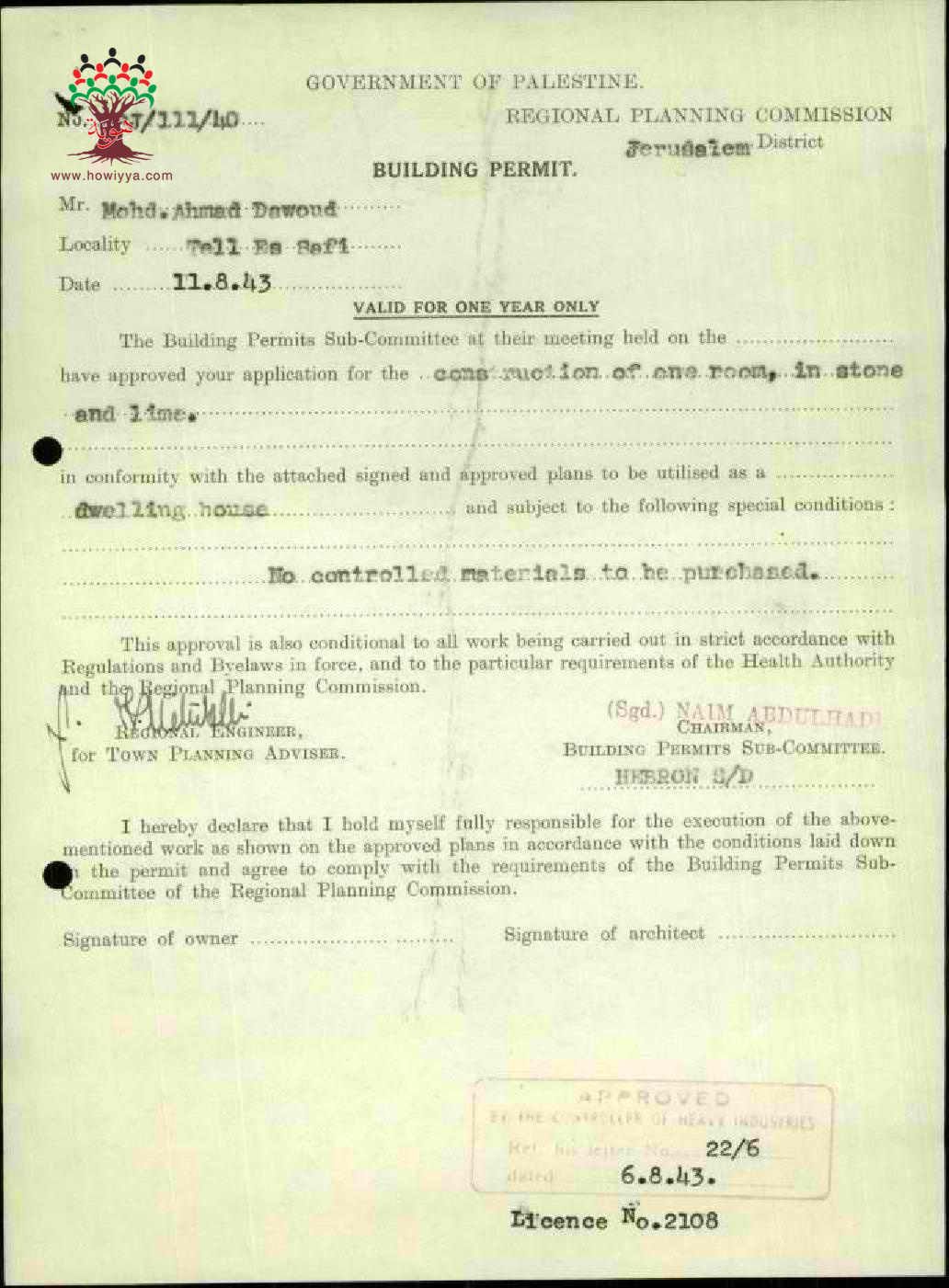طلب رخصة بناء ل محمد أحمد داوود-تل الصافي