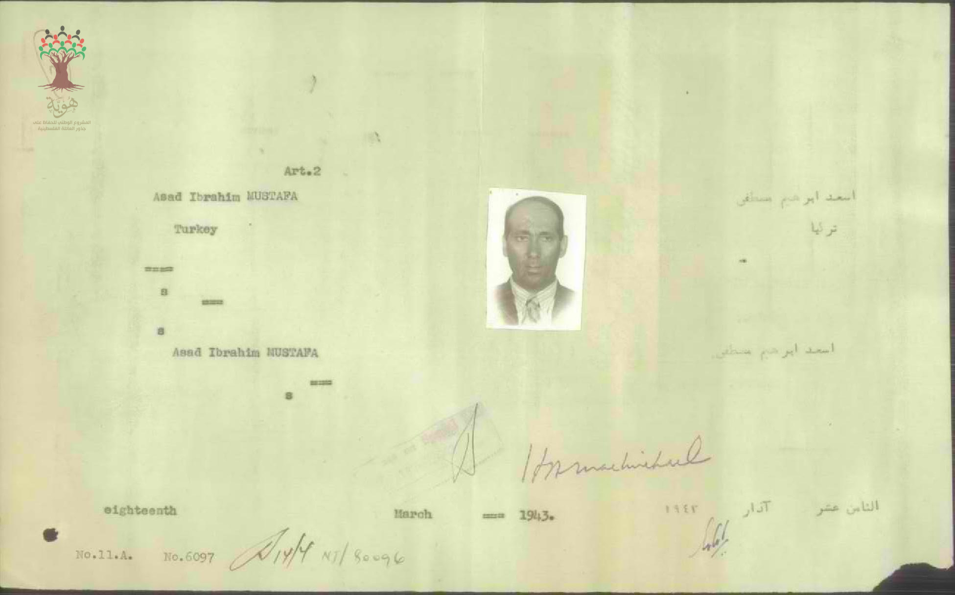 ورقة بيانات أسعد مصطفى المرفقة بطلب الجنيسية