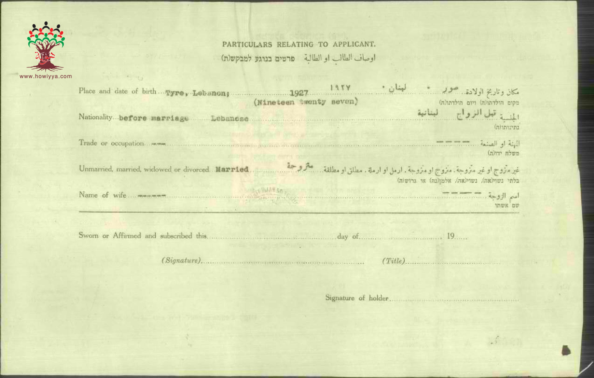 شهادة الجنسية الفلسطينية ل ايفا ابو جمرة خوري