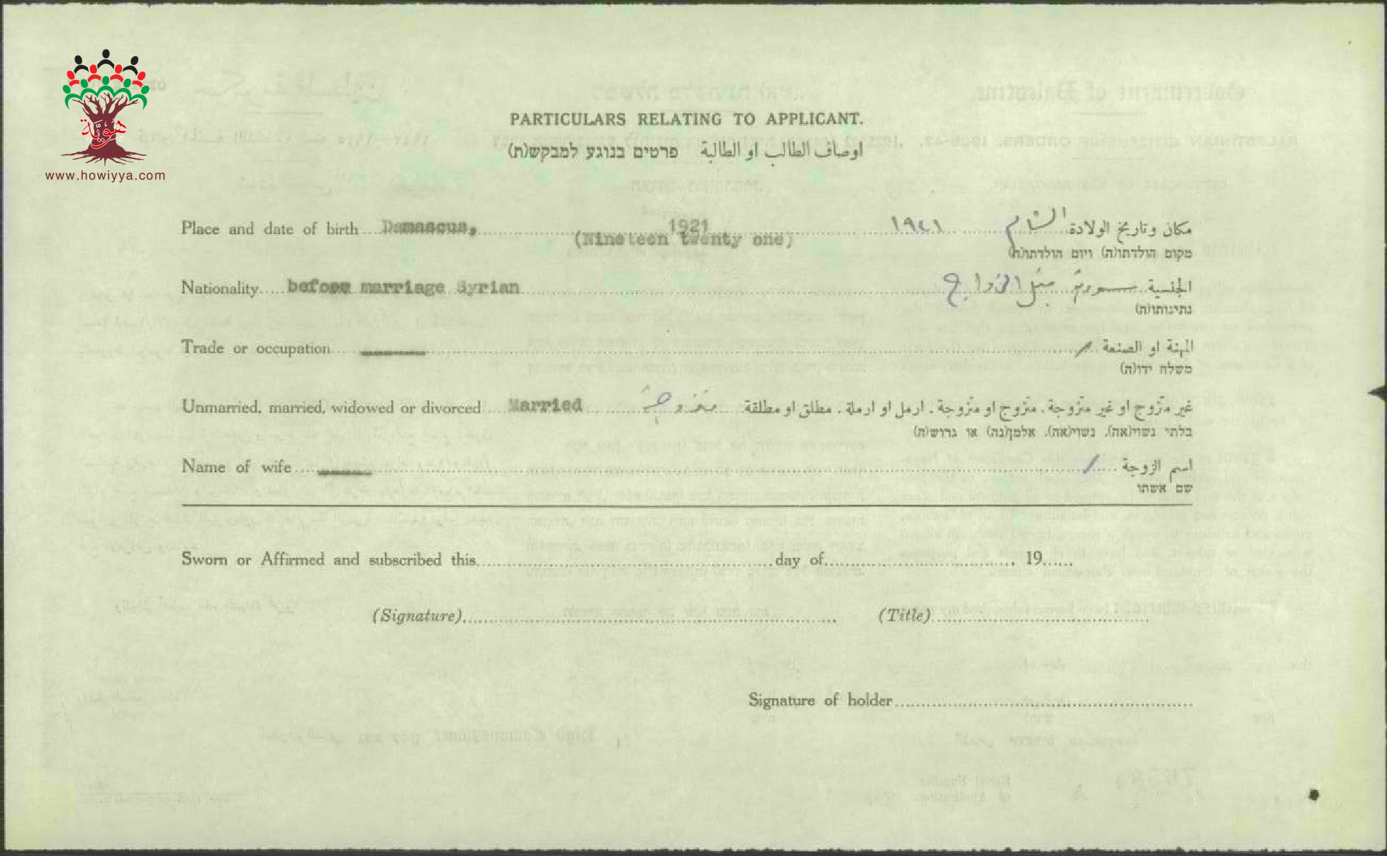 شهادة الجنسية الفلسطينية ل سعاد السابق