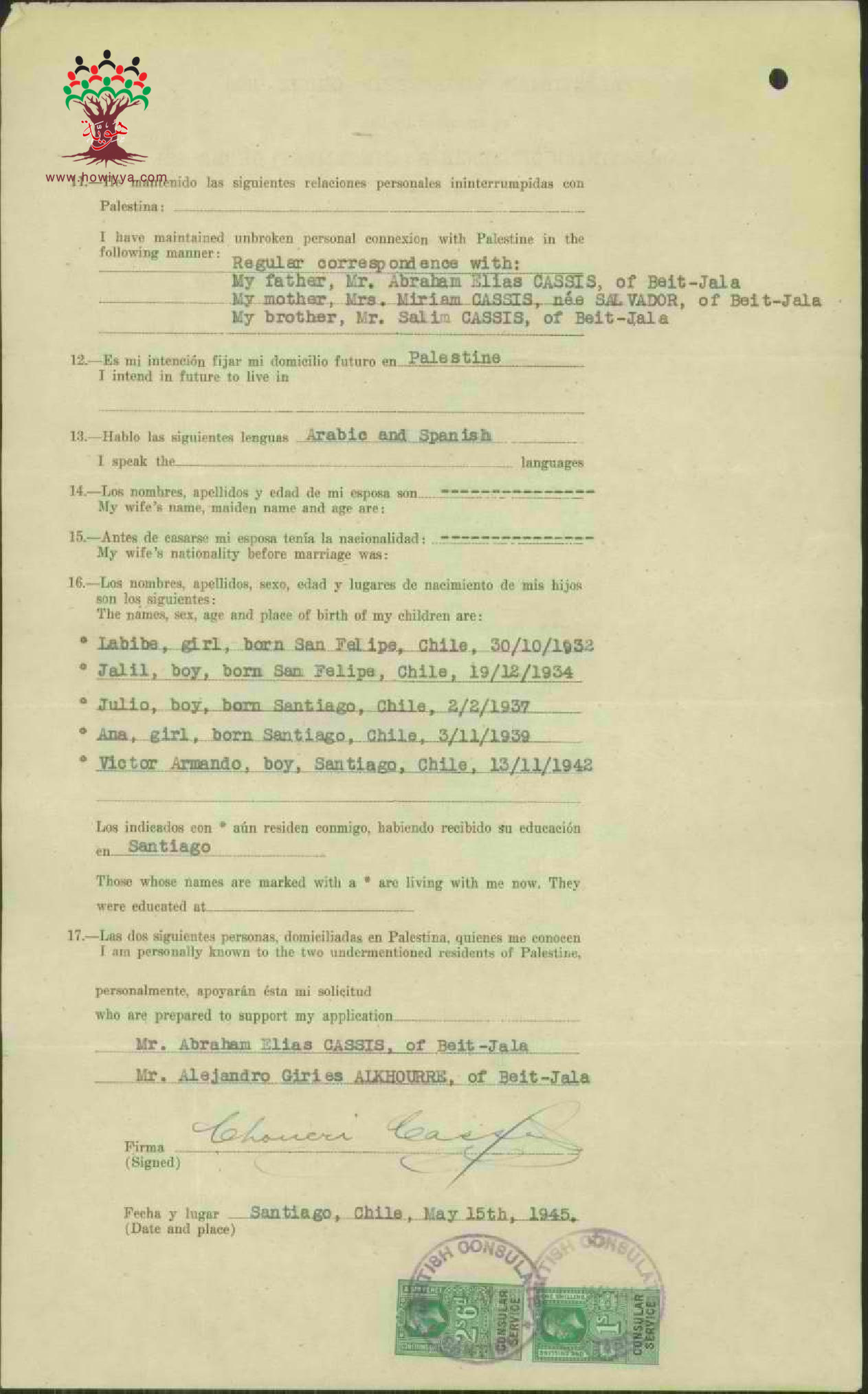 طلب الجنسية الفلسطينية-شكري قسيس-بيت جالا/تشيلي