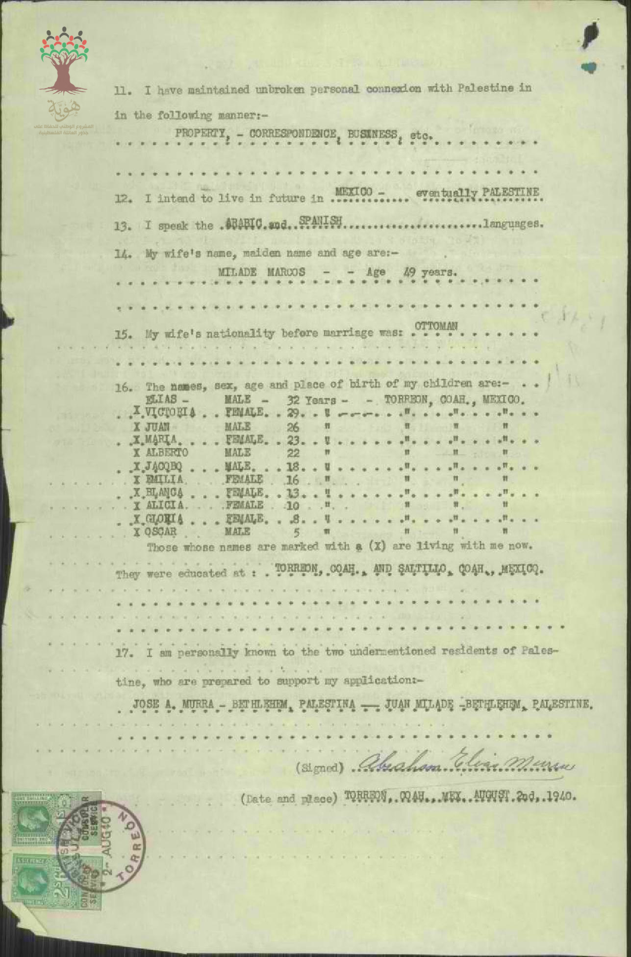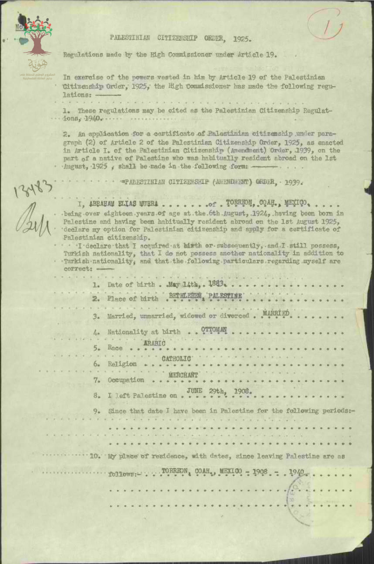 طلب الجنسية الفلسطينية-ابراهيم الياس مرة-بيت لحم/المكسيك