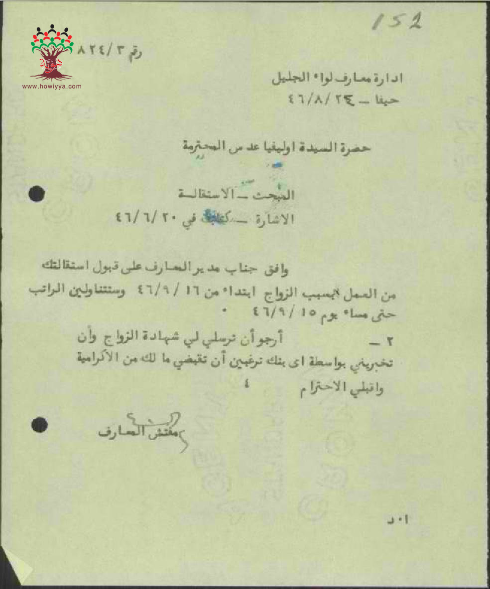 مجموعة رسائل بخصوص استقالة المعلمة اوليفيا عدس وتحويل راتبها الى بنك باركليس