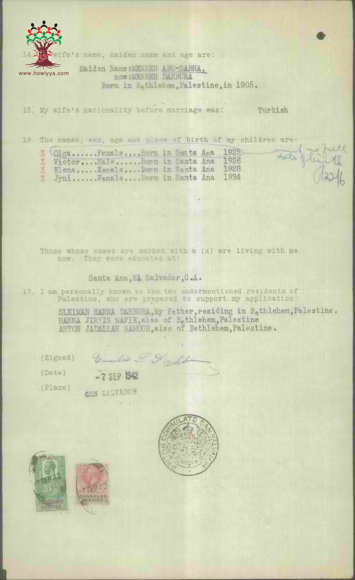 طلب الجنسية الفلسطينية-اميليو دحبورة-بيت لحم/السيلفادور