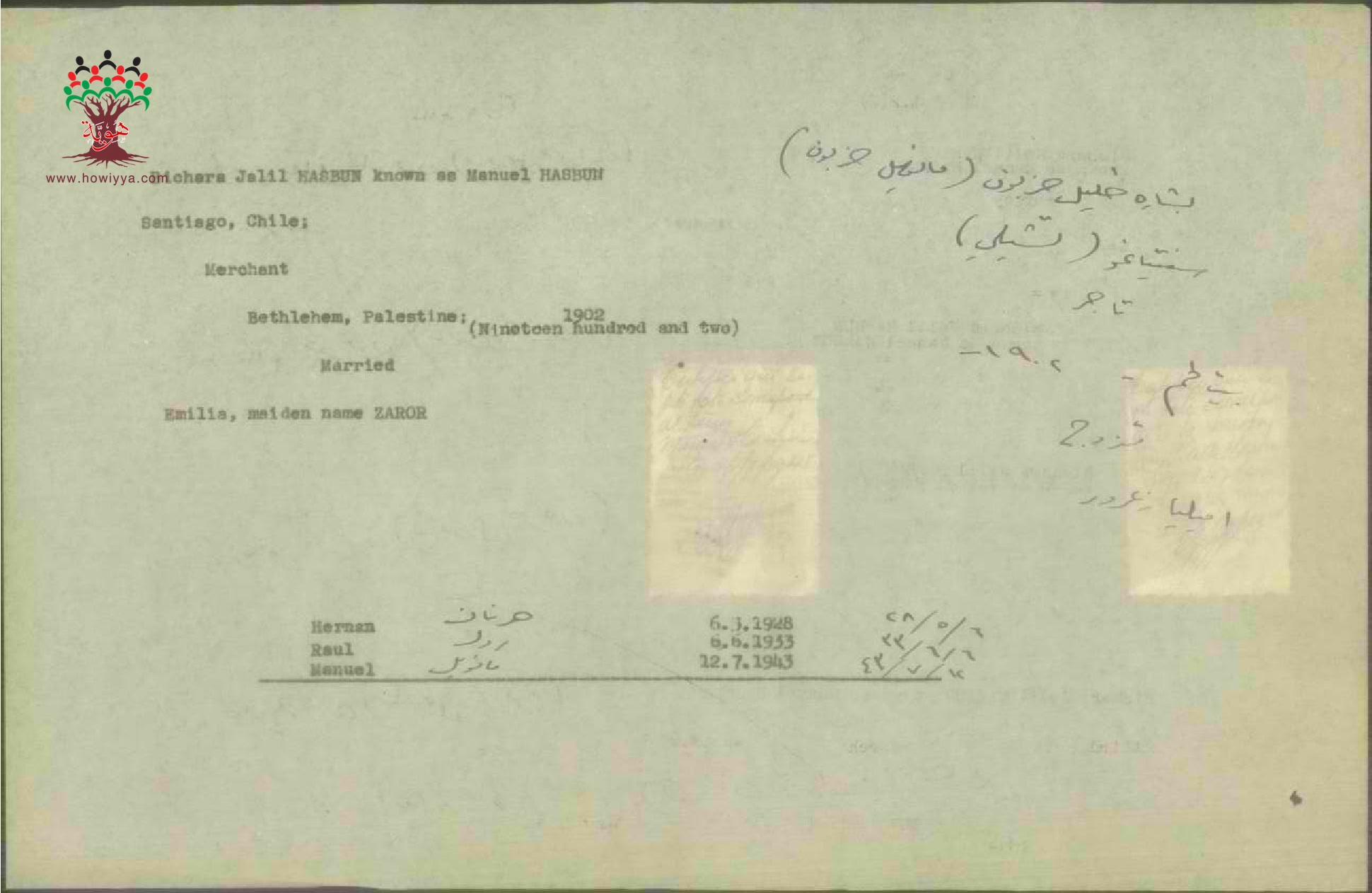 ورقة بيانات بشارة خليل حزبون المرفقة بطلب الجنسية
