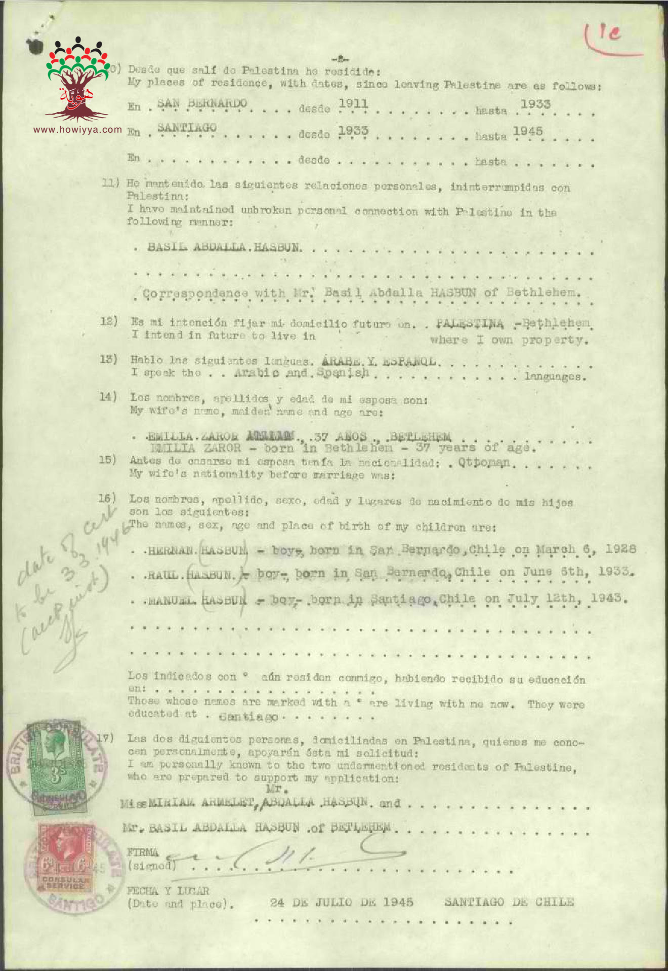 طلب الجنسية الفلسطينية-بشارة خليل حزبون-بيت لحم/تشيلي