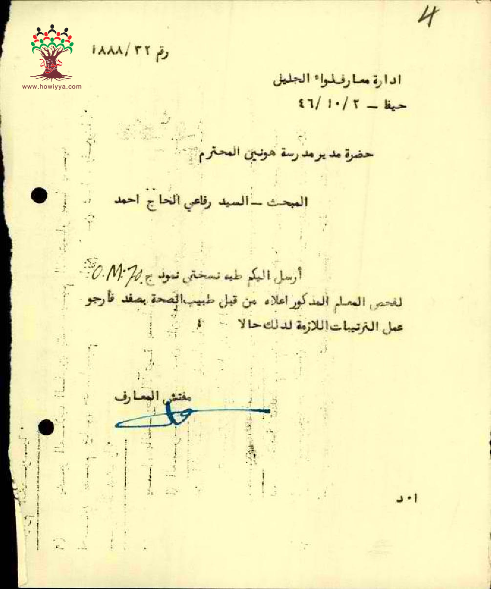 رسائل بخصوص أوراق تعيين المعلم رفاعي أحمد الرفاعي