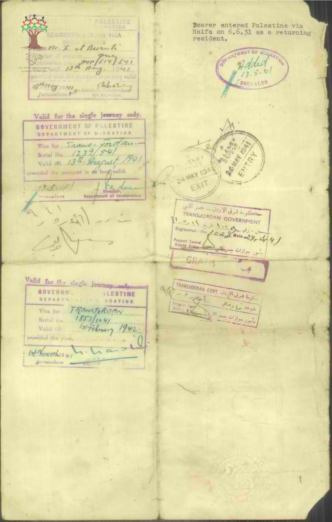 تذكرة هوية ابراهيم البيروتي المعروف بابراهيم البيروتي أحمد