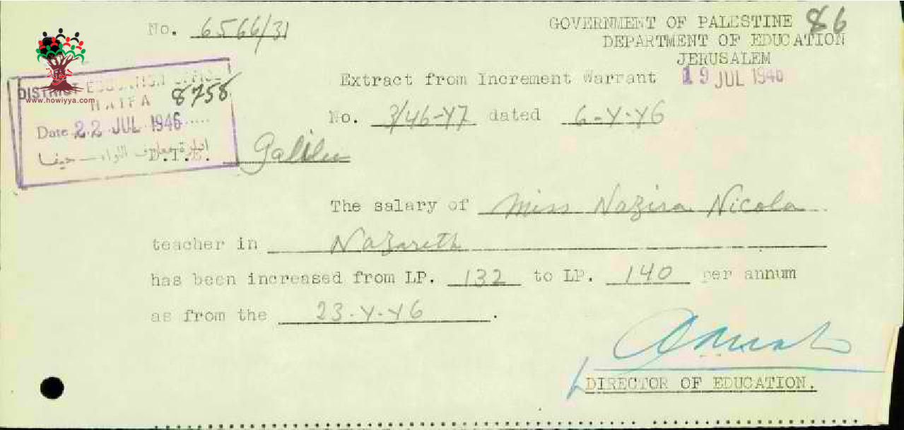 رسائل بخصوص زيادة راتب المعلمة نظيرة نقولا أبو درة السنوية