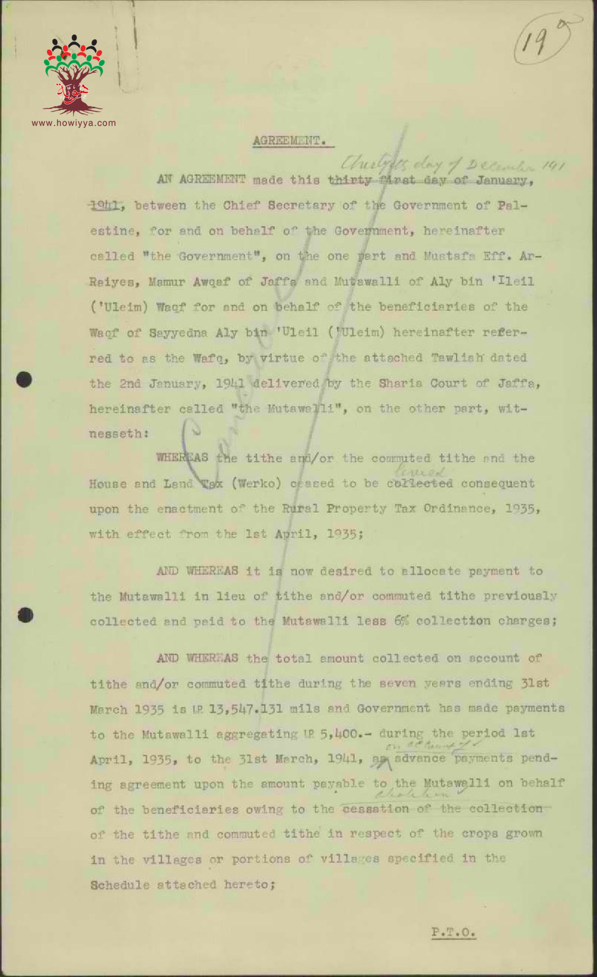 التوصل الى مشروع اتفاق حول وقف علي بن عليل(عليم)