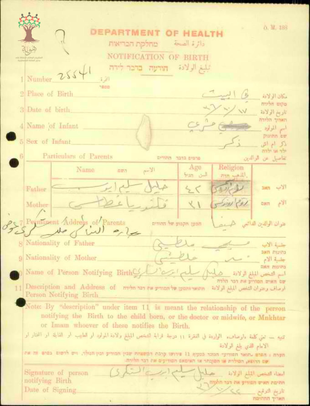 ولادة تبليغ ولادة-متري خليل سليم أيوب