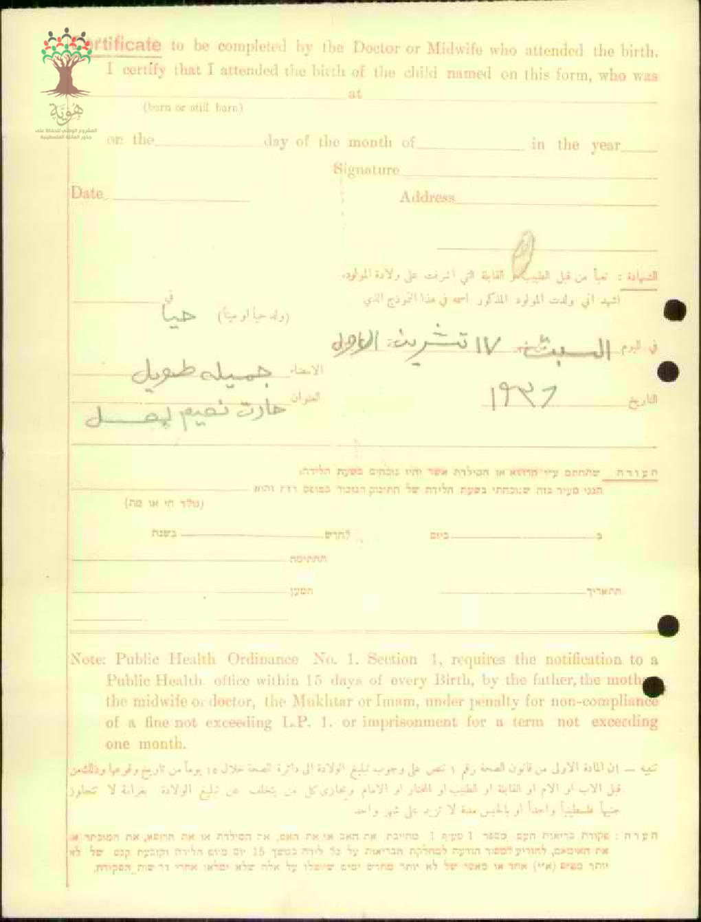 ولادة تبليغ ولادة-متري خليل سليم أيوب و أمه فكتوريا غطاس