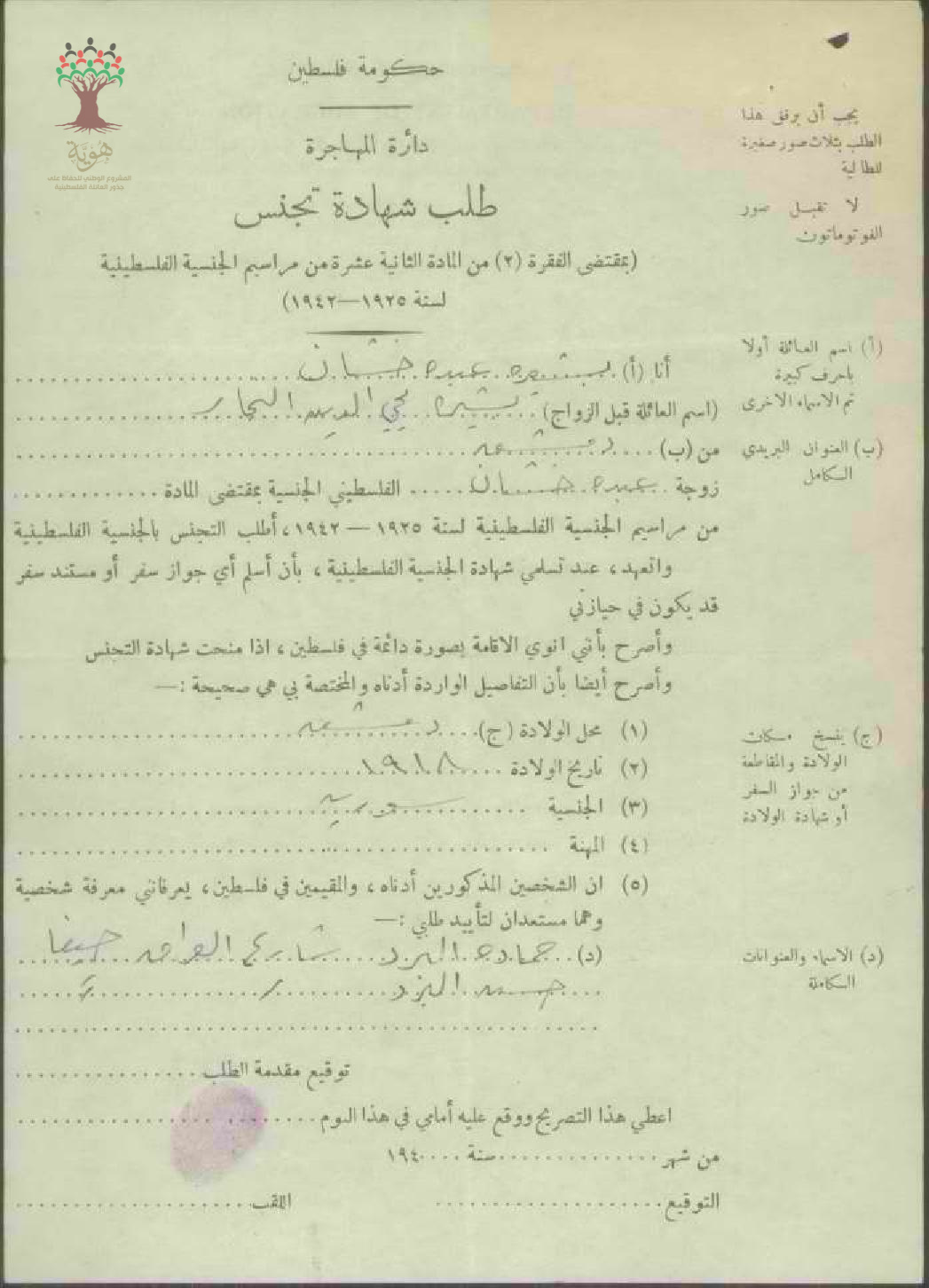 طلب شهادة التجنيس-بشيرة النجار (خشان)
