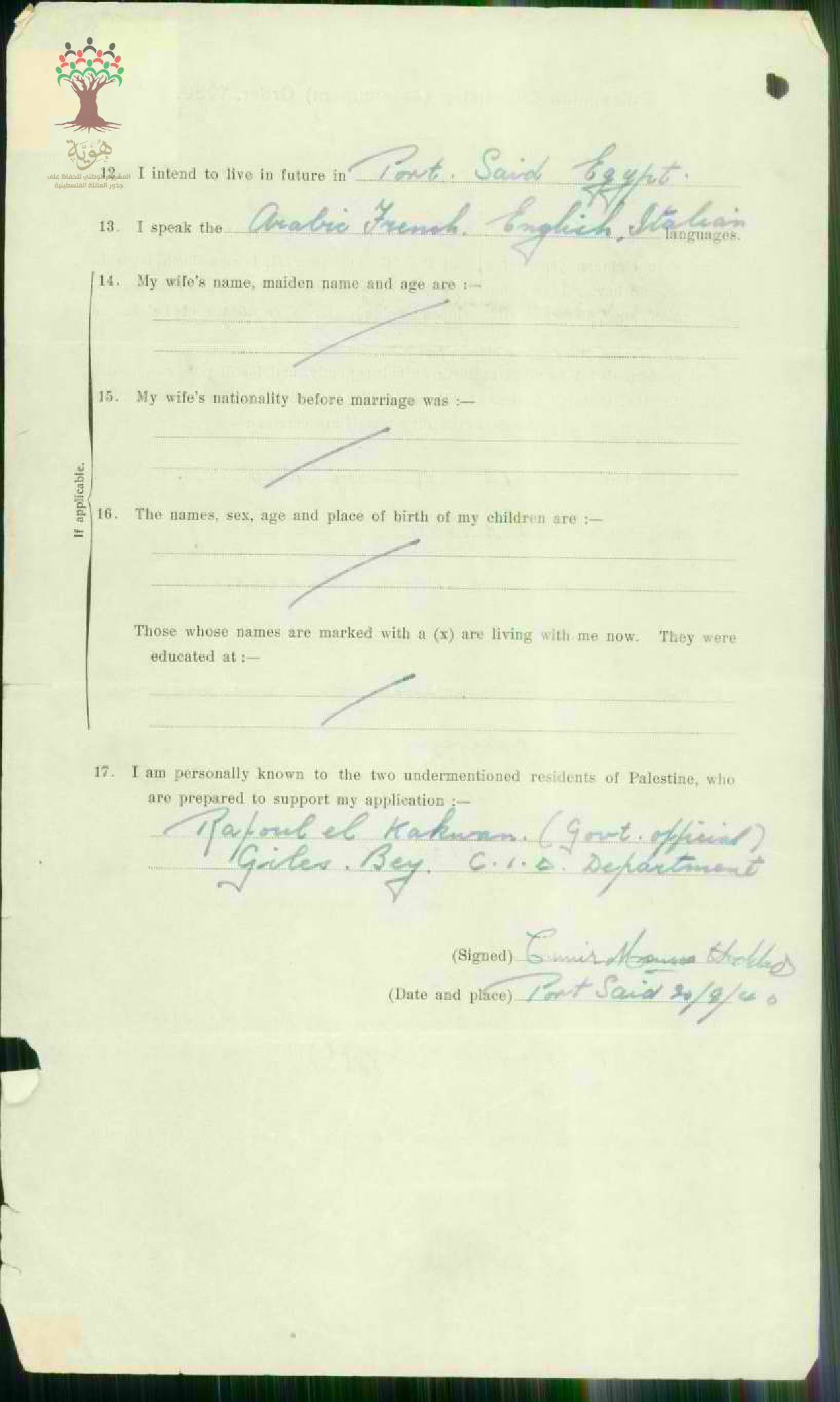 طلب الجنسية الفلسطينية-تامر موسى حداد-البصة