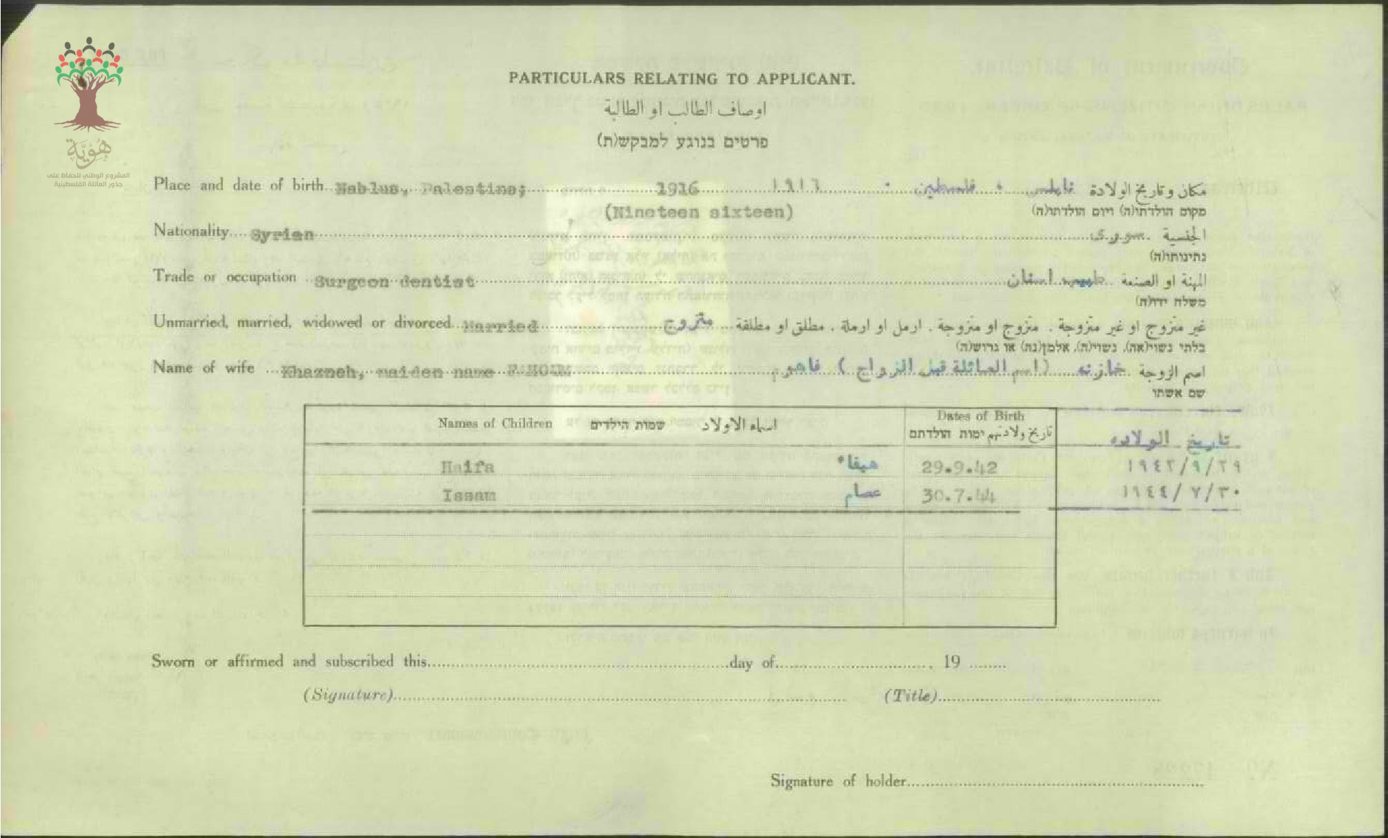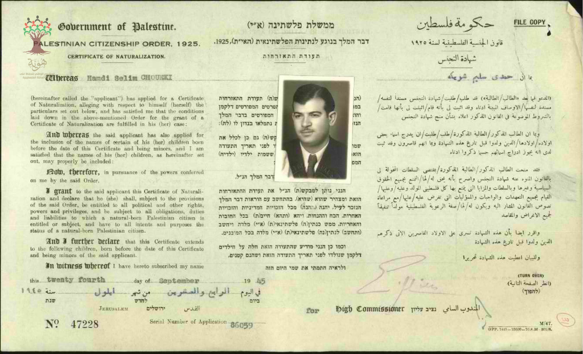 شهادة الجنسية الفلسطينية لحمدي سليم شويكة