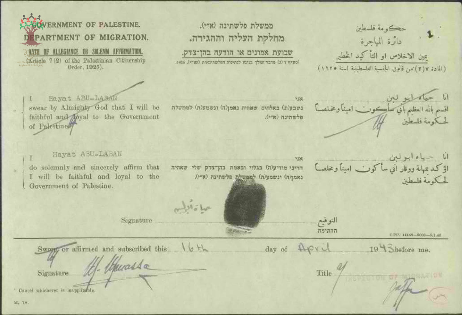 حياة سعيدي (أبو لبن) توقع على (يمين الاخلاص)للحصول علة الجنسية الفلسطينية