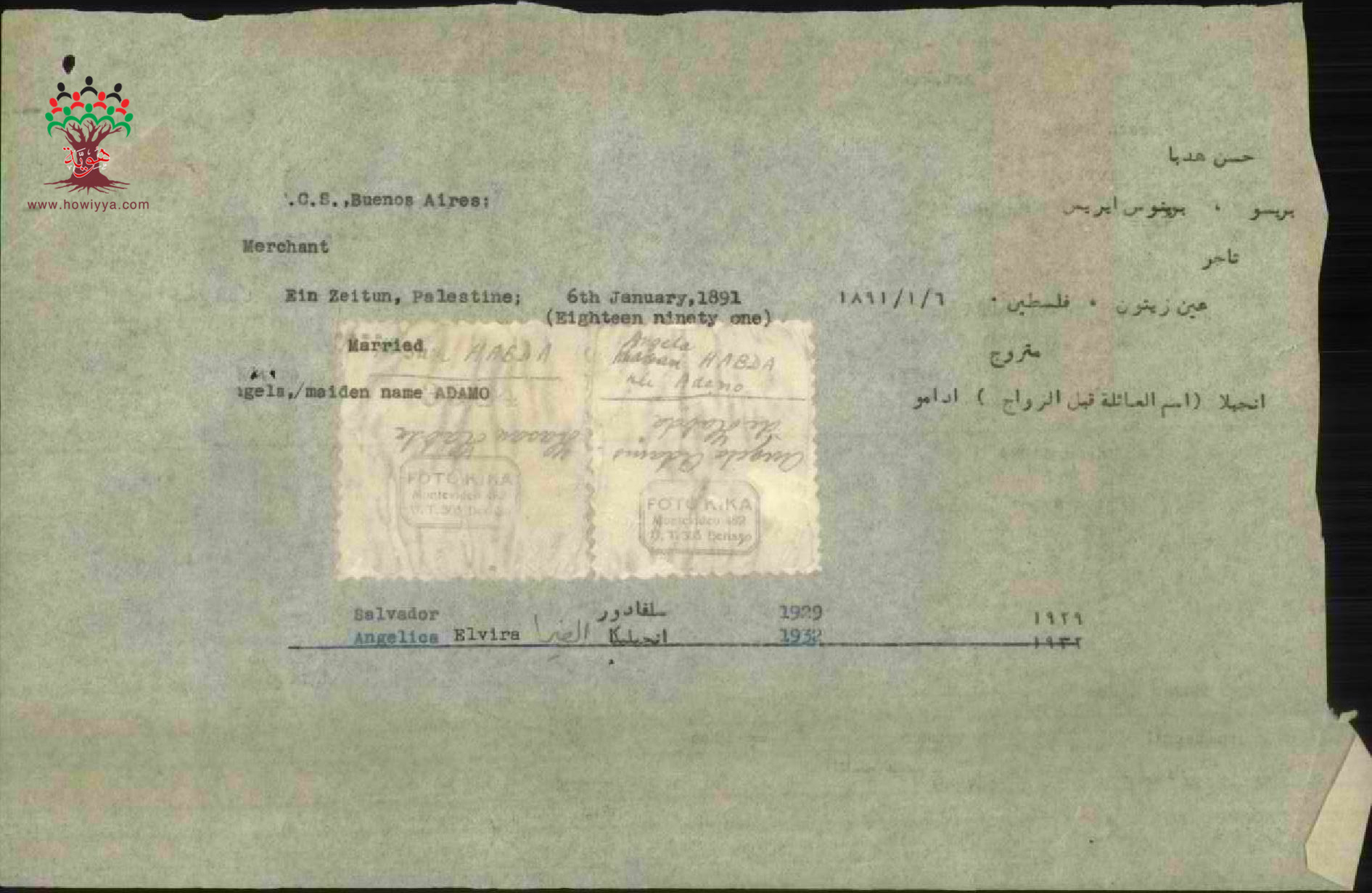 ورقة بيانات حسن هدبا المرفقة بطلب الجنسية
